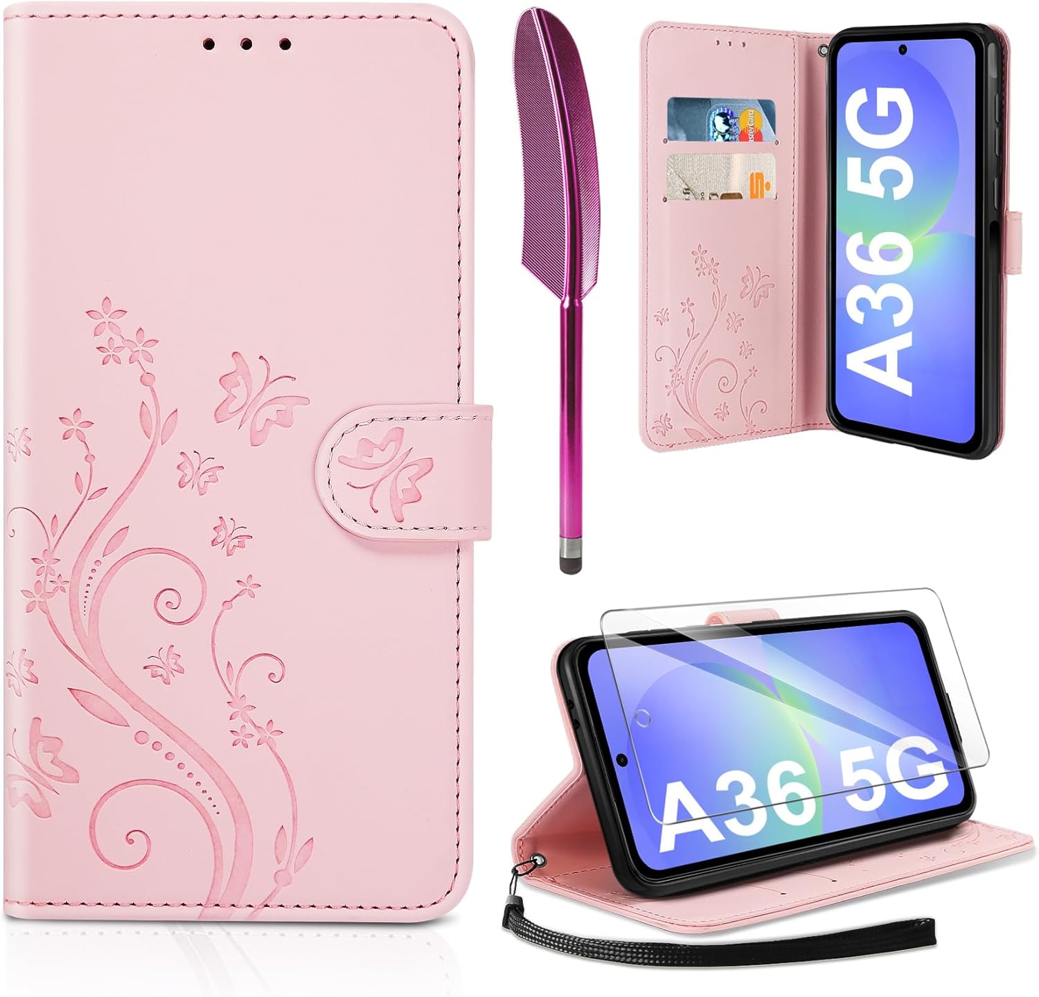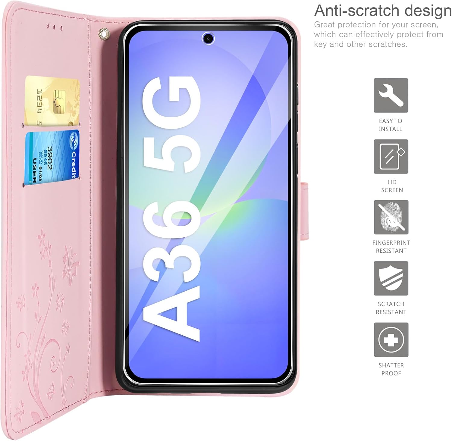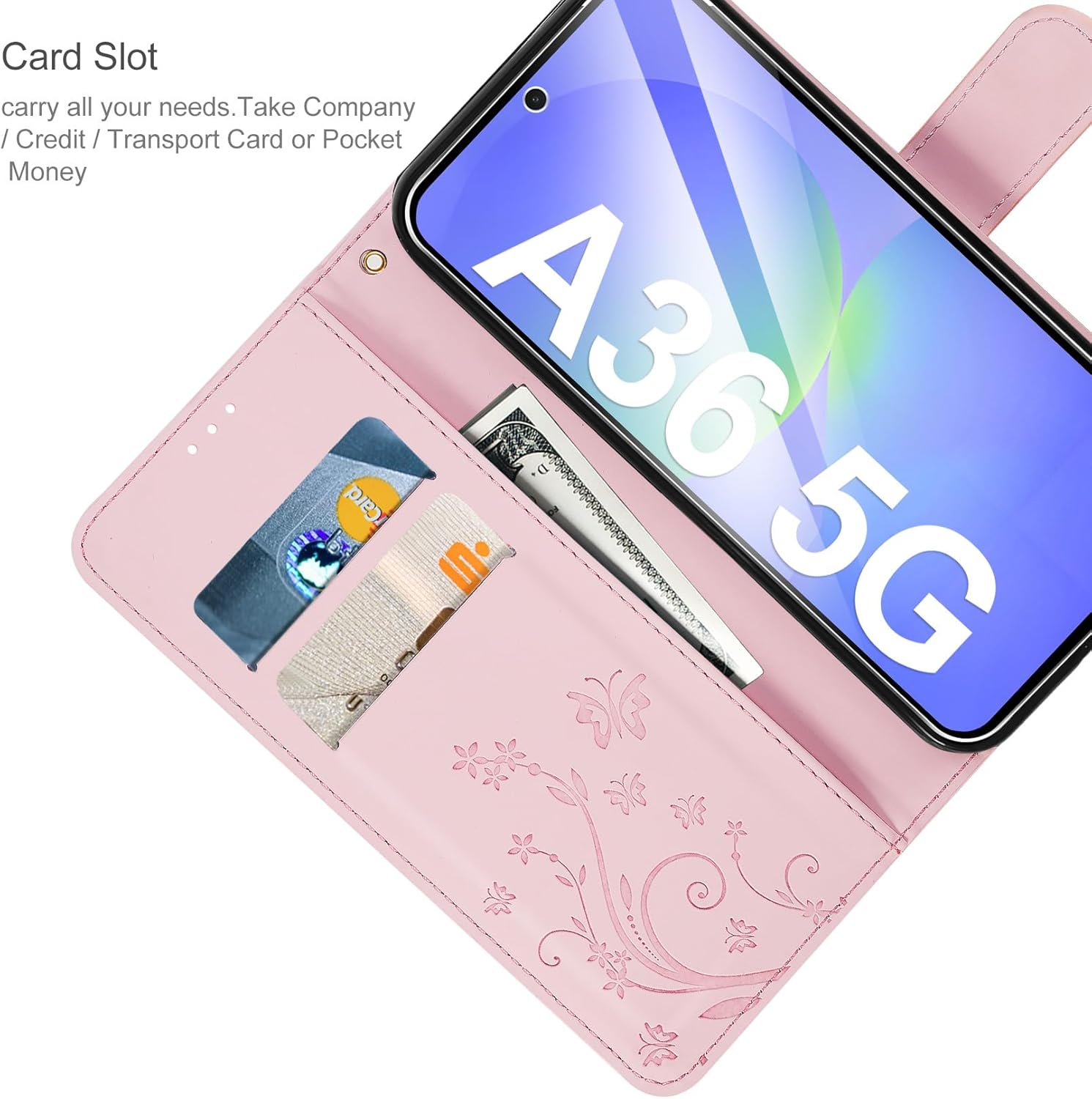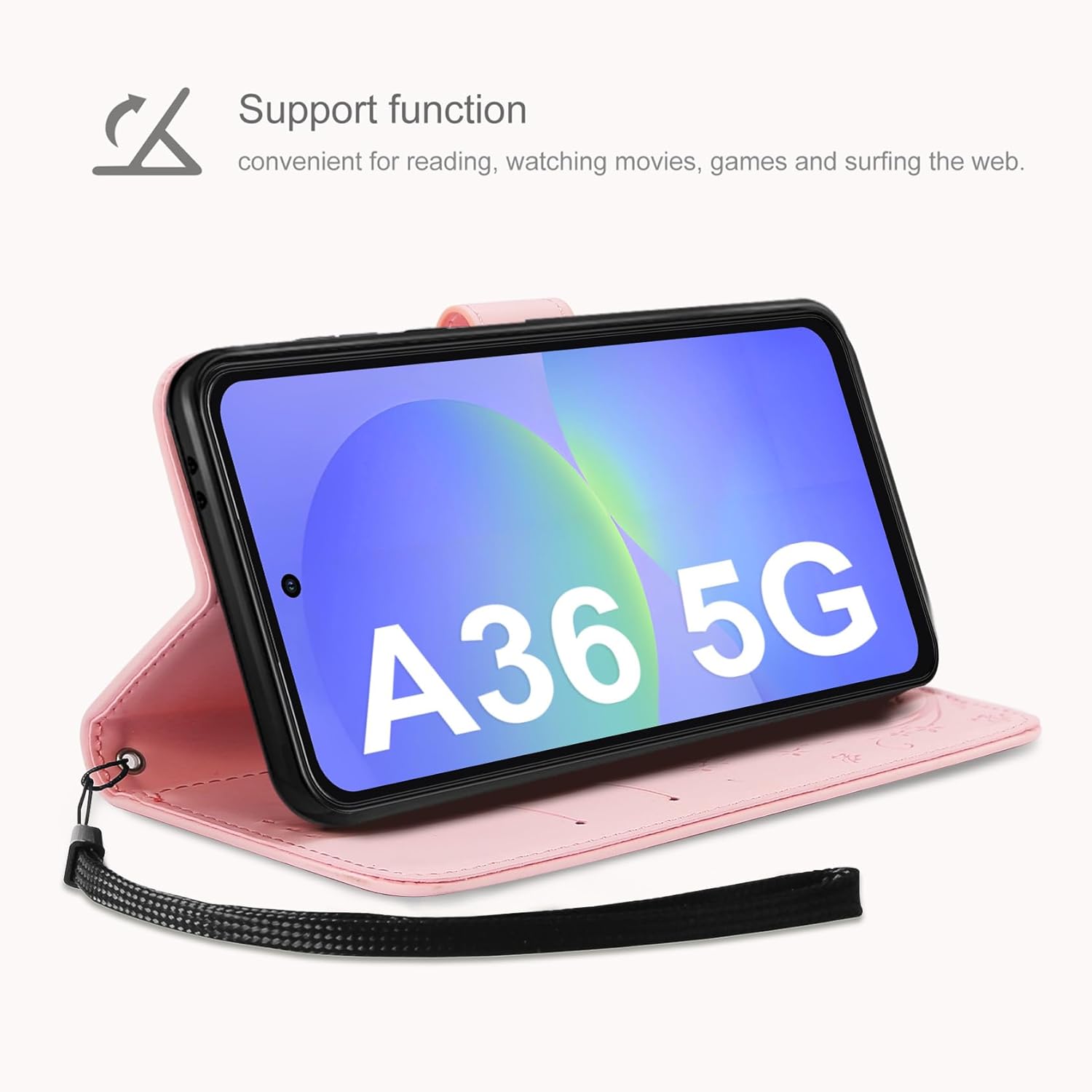 Кожен калъф AROYI, съвместим с Samsung Galaxy A36 5G, калъф и защитно фолио, калъф за мобилен телефон тип портфейл, кожен калъф, слотове за карти, защитен калъф, съвместим с Samsung Galaxy A36 5G, розов
