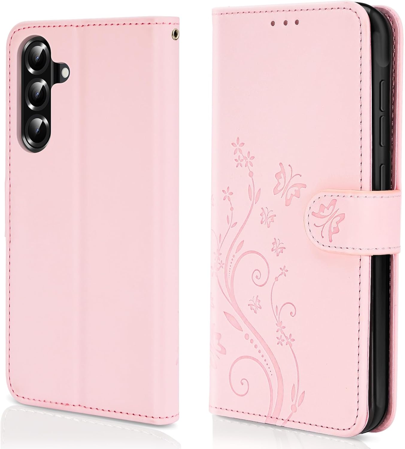 • Флип калъфът е съвместим със Samsung Galaxy A16 5G/4G и предлага отлична 360-градусова защита. Многофункционален флип калъф от PU кожа с цветя на пеперуда и мека вътрешна подплата от TPU, защитно фолио за защита на екрана от прах и драскотини.