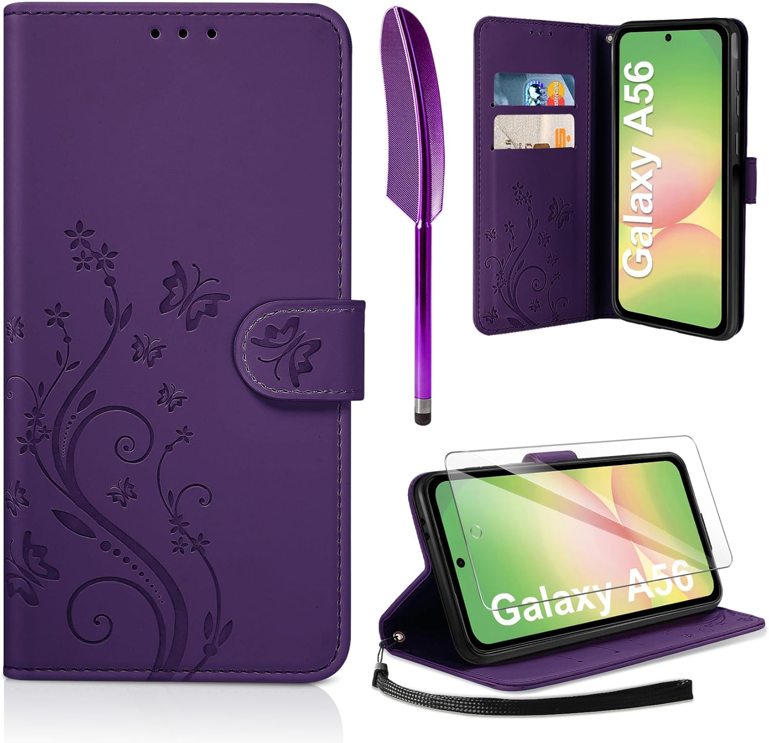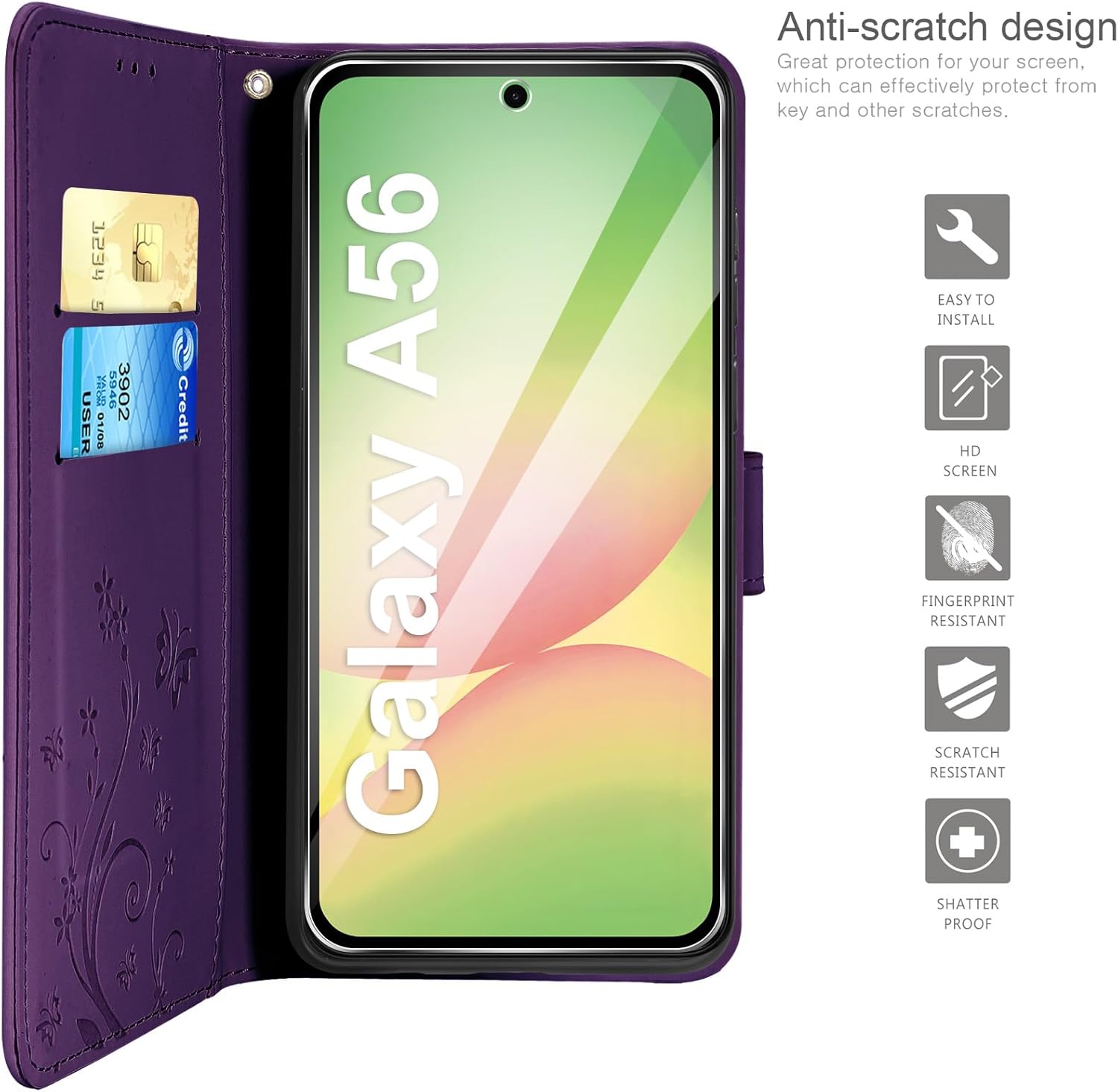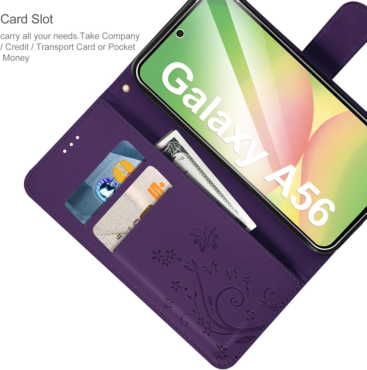 Кожен калъф AROYI, съвместим с Samsung Galaxy A56 5G, калъф и протектор за екран, флип-портфейл, калъф за мобилен телефон, PU кожен калъф със слотове за карти, защитен калъф, съвместим с Samsung Galaxy A56 5G, тъмен цвят.