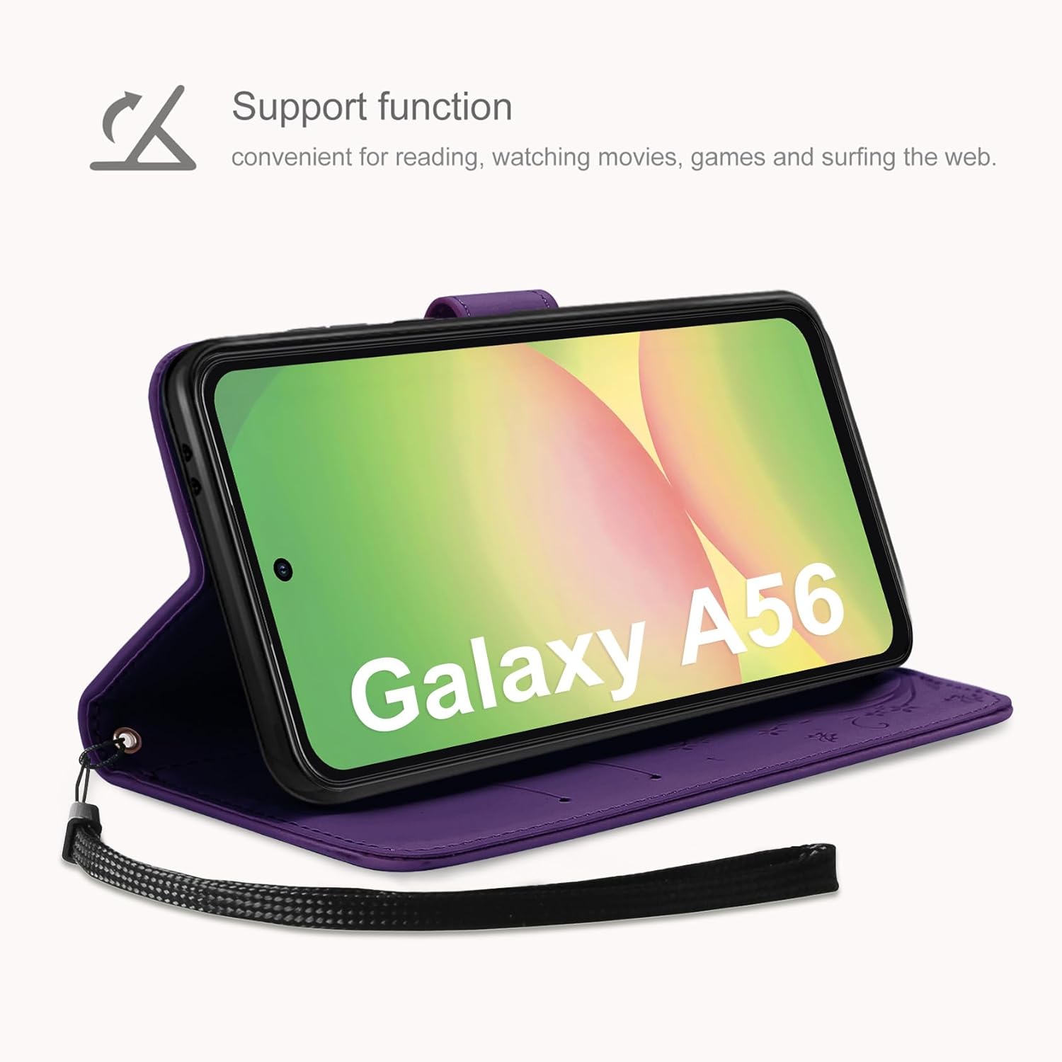 • Флип калъфът е съвместим със Samsung Galaxy A16 5G/4G и предлага отлична 360-градусова защита. Многофункционален флип калъф от PU кожа с цветя на пеперуда и мека вътрешна подплата от TPU, защитно фолио за защита на екрана от прах и драскотини.