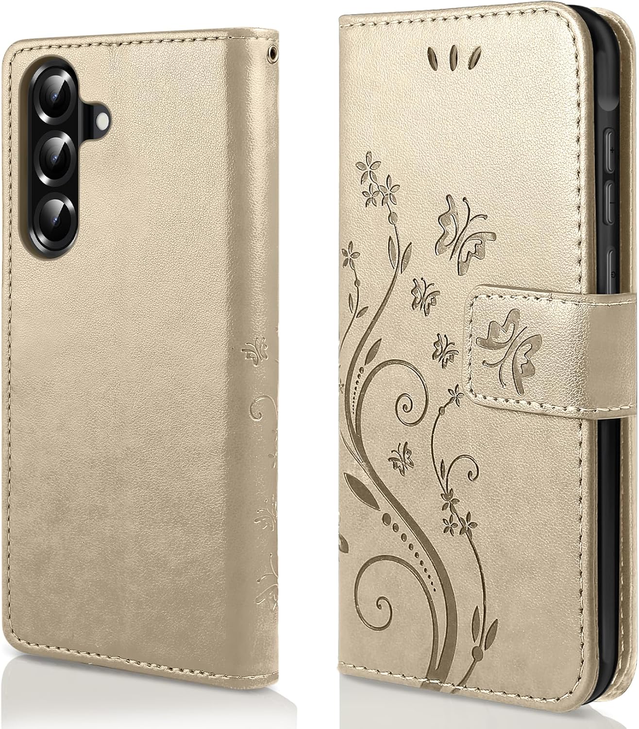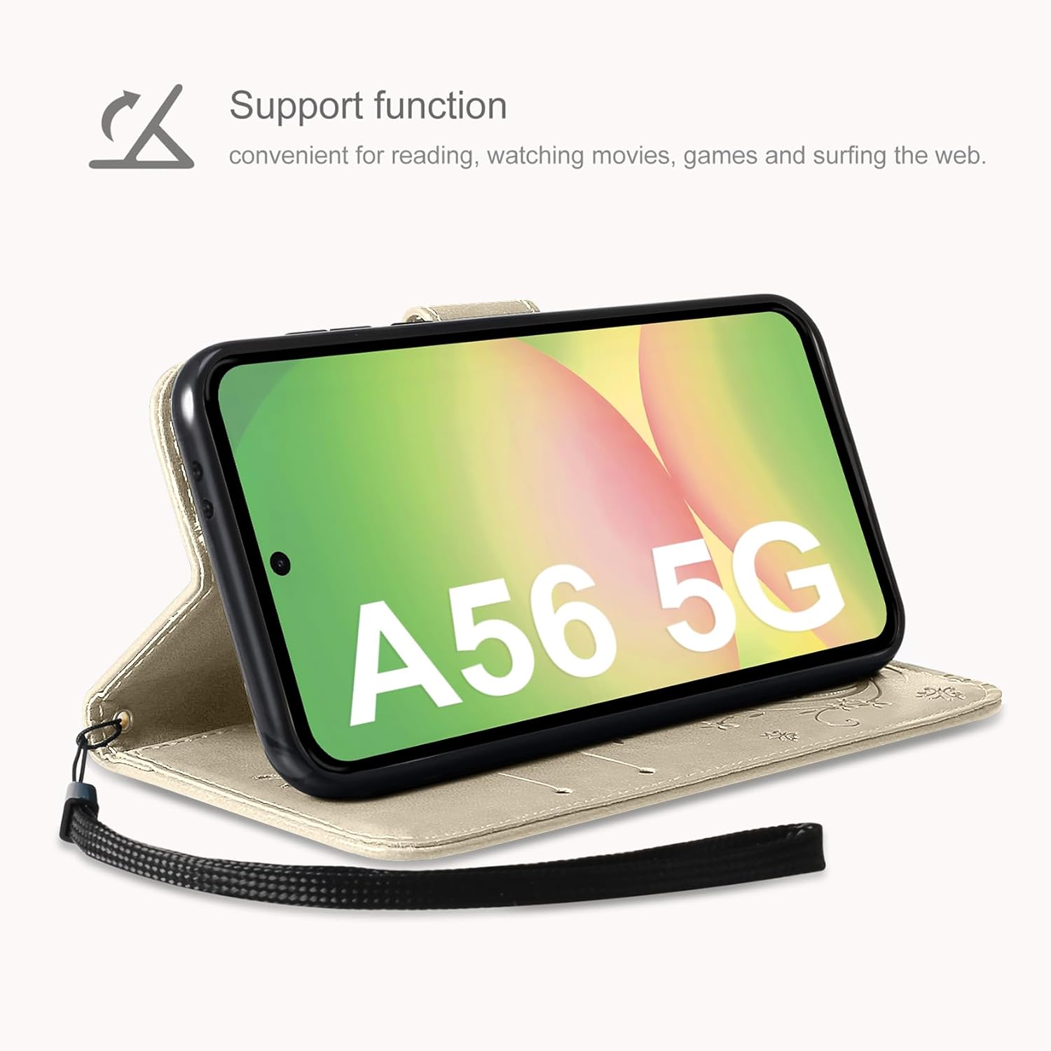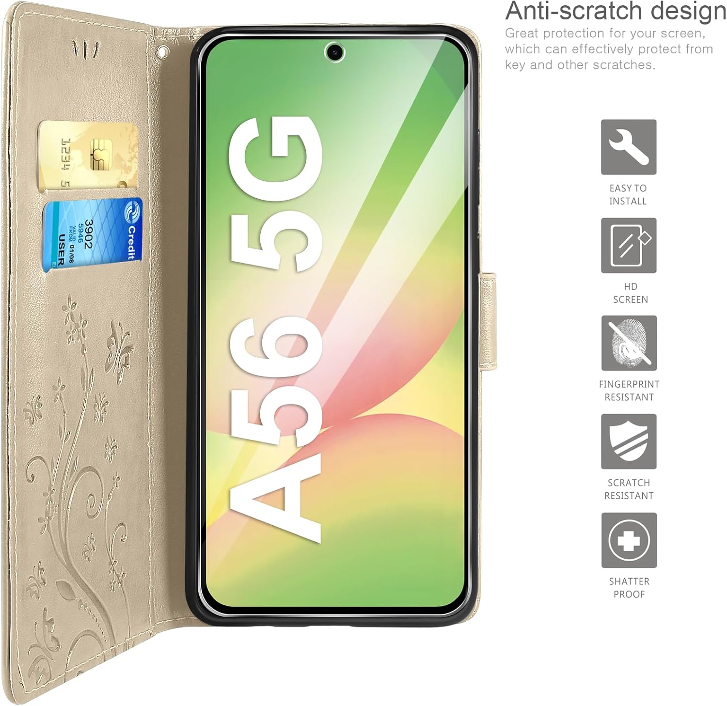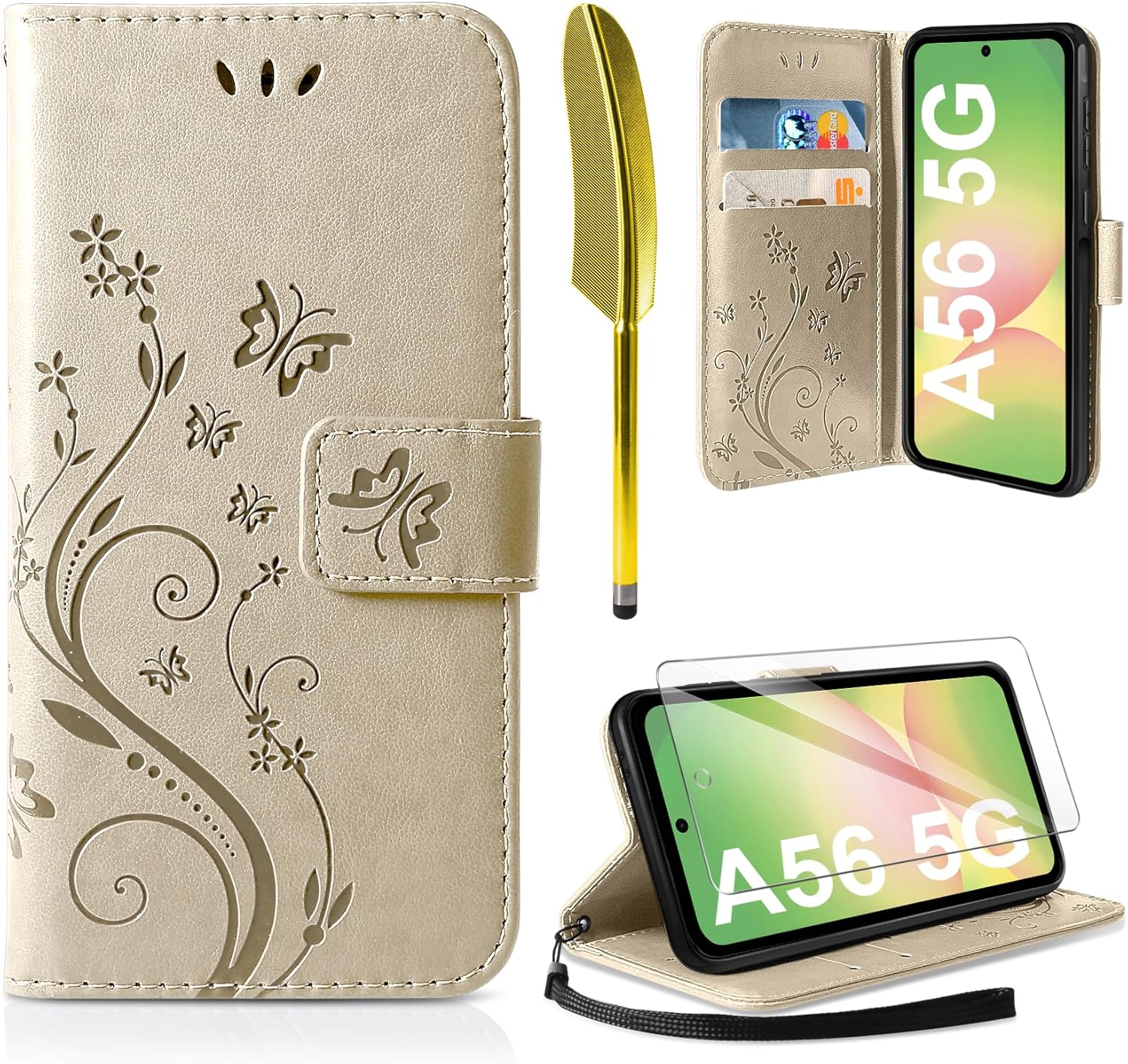 • Флип калъфът е съвместим със Samsung Galaxy A16 5G/4G и предлага отлична 360-градусова защита. Многофункционален флип калъф от PU кожа с цветя на пеперуда и мека вътрешна подплата от TPU, защитно фолио за защита на екрана от прах и драскотини.
