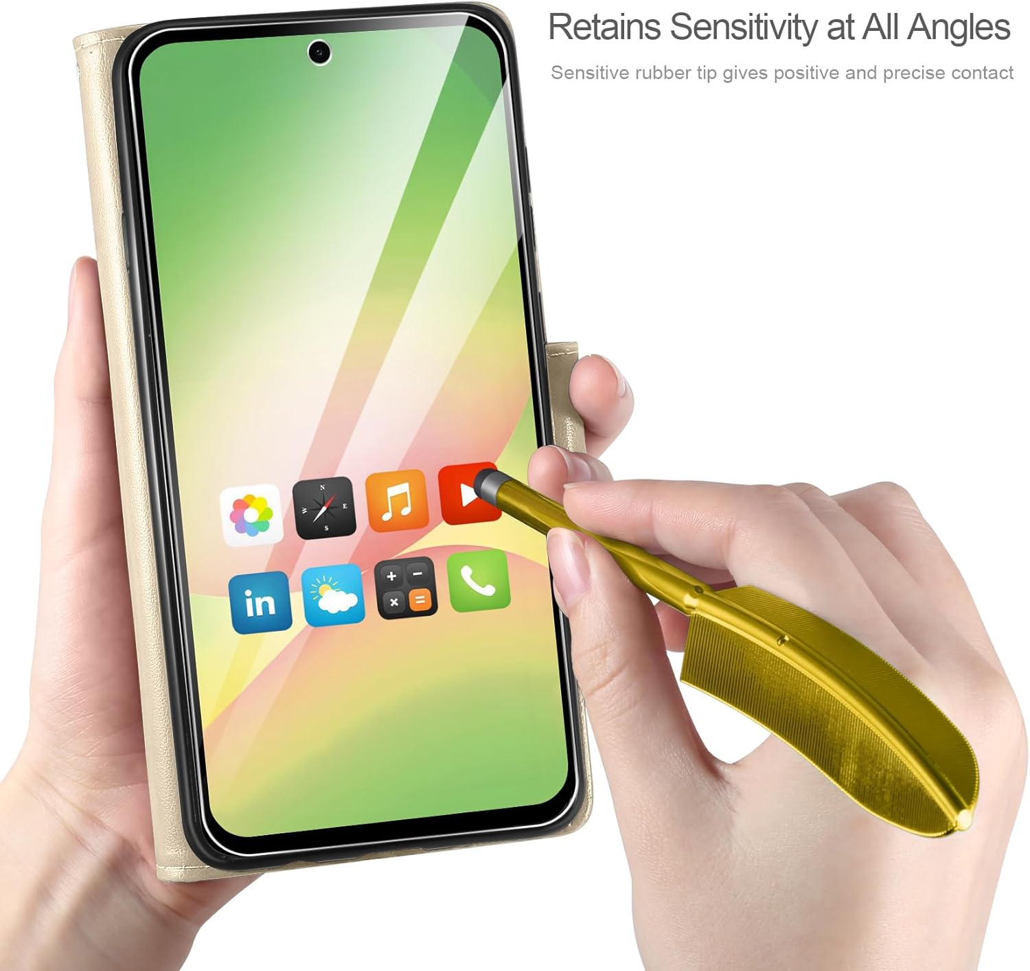 • Специално проектиран калъф за мобилен телефон, съвместим със Samsung Galaxy A16 5G/4G. Комплектът включва: кожен калъф, съвместим със Samsung Galaxy A16 5G/4G, протектор за екран и стилус за тъчскрийн.
