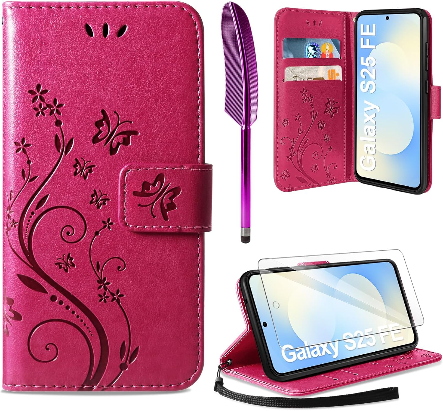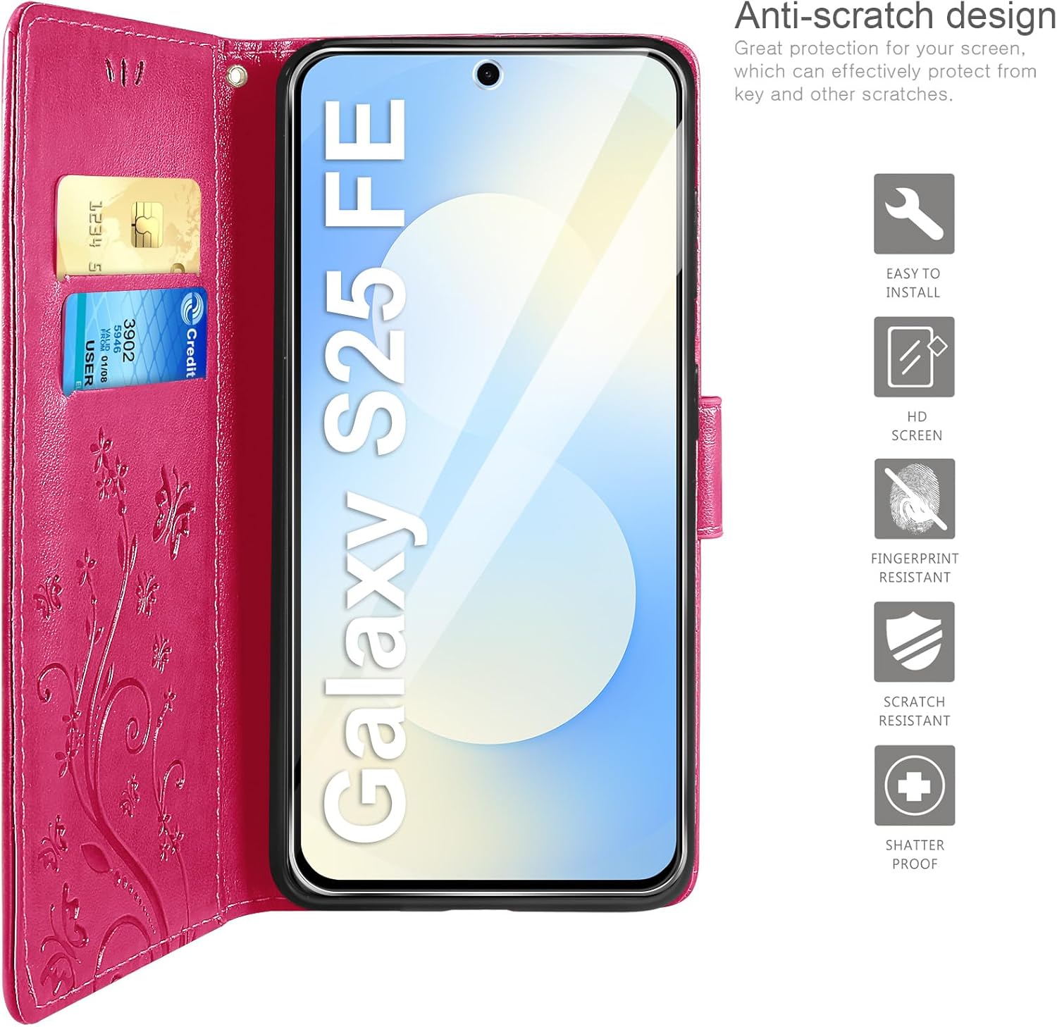 Кожен калъф AROYI, съвместим с Samsung Galaxy S25 FE 5G, калъф и протектор за екран, флип-портфейл, калъф за мобилен телефон, PU кожен калъф със слотове за карти, защитен калъф, съвместим с Samsung Galaxy S25 FE 5G