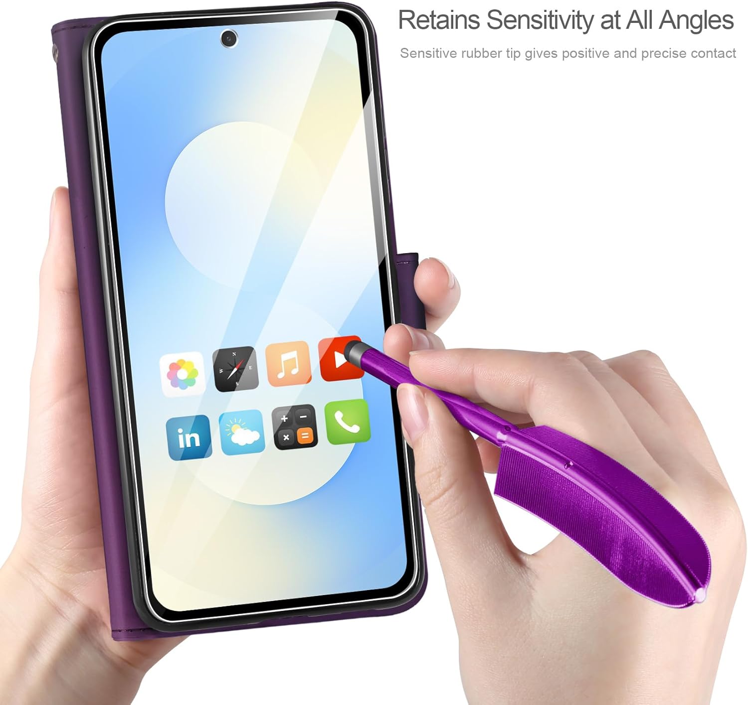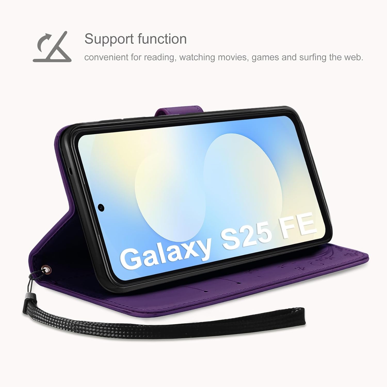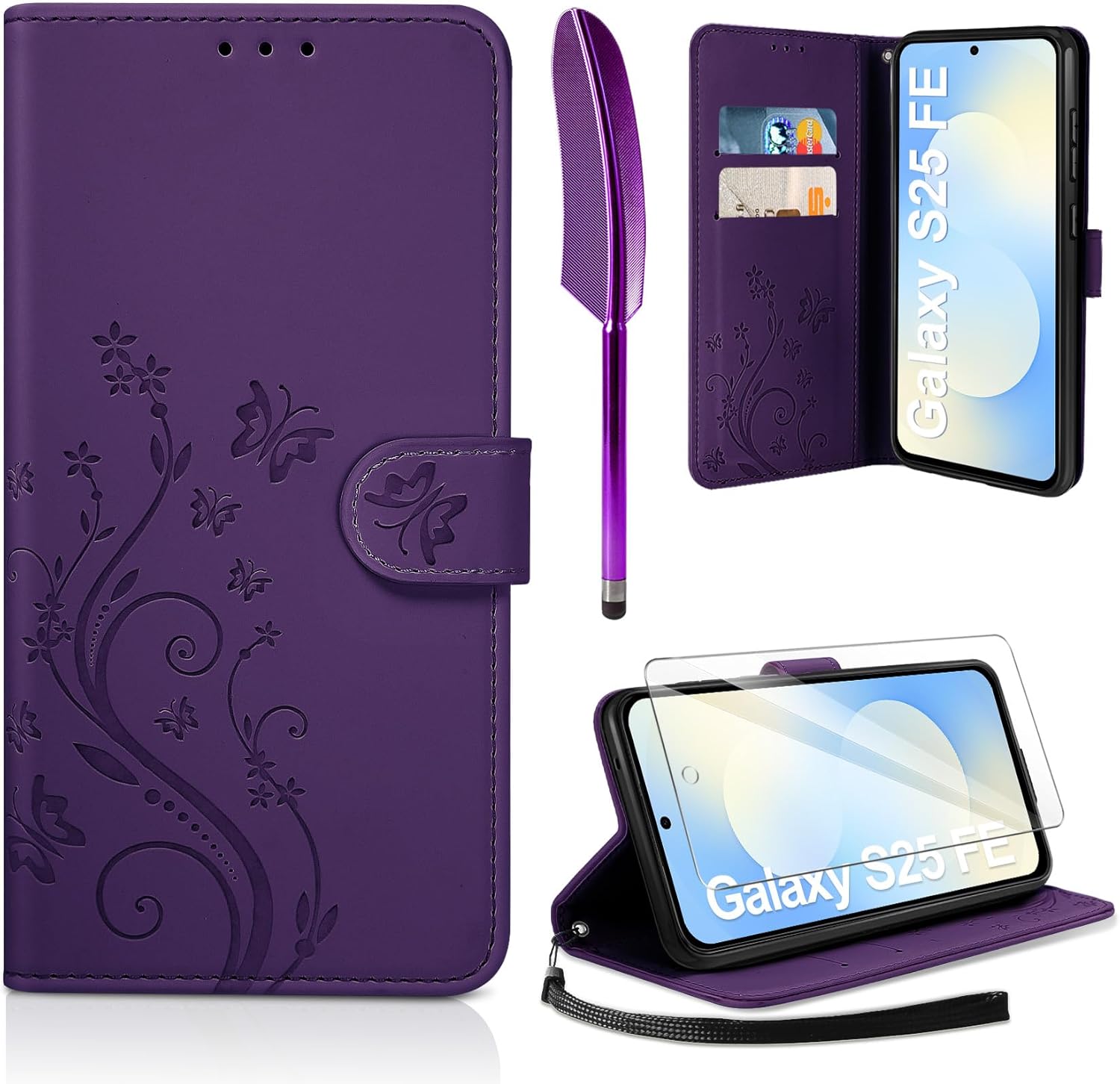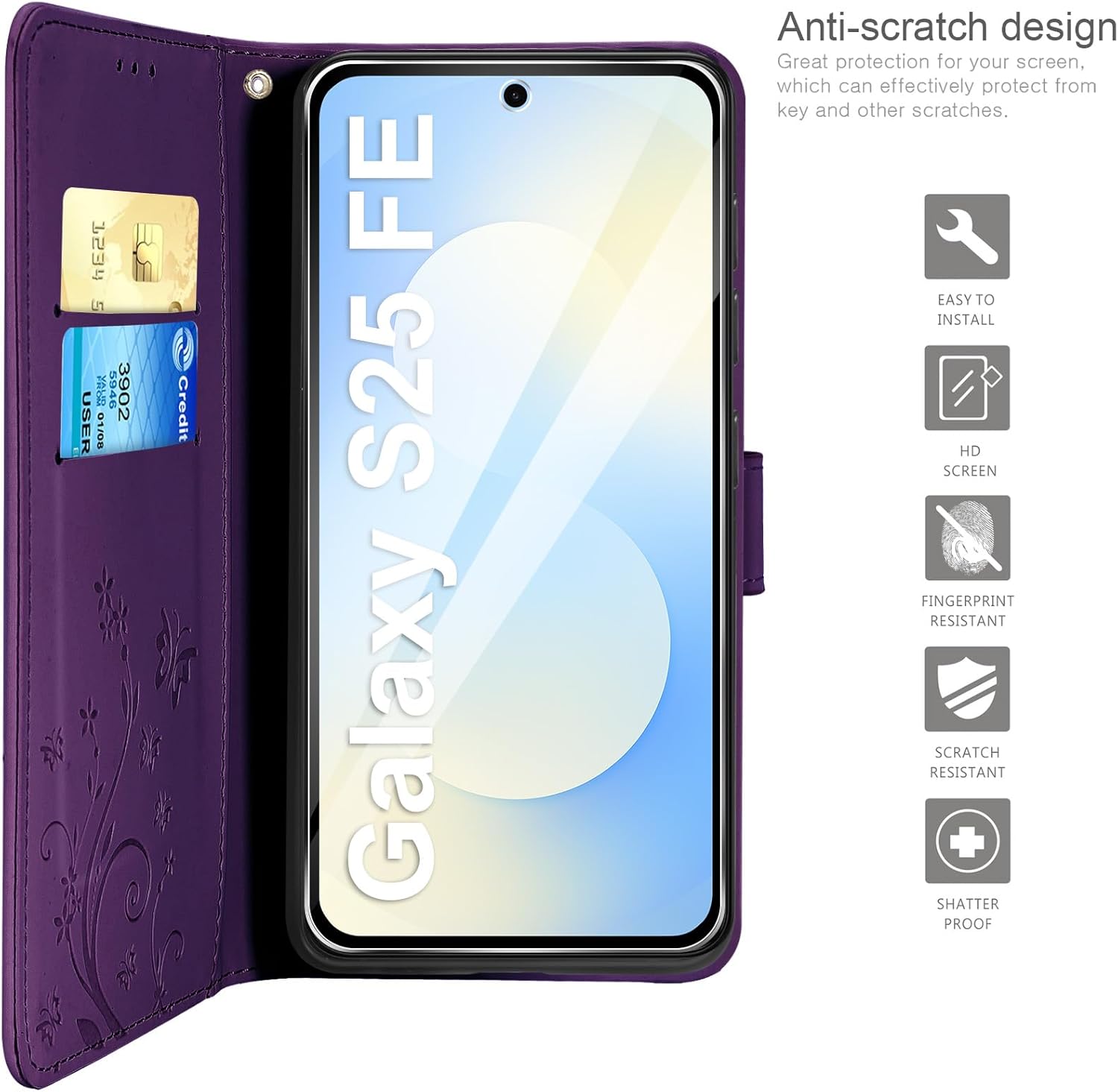 Кожен калъф AROYI, съвместим с Samsung Galaxy S25 FE 5G, калъф и протектор за екран, флип-портфейл, калъф за мобилен телефон, PU кожен калъф, защитен калъф, съвместим с Samsung Galaxy S25 FE 5G, тъмен цвят