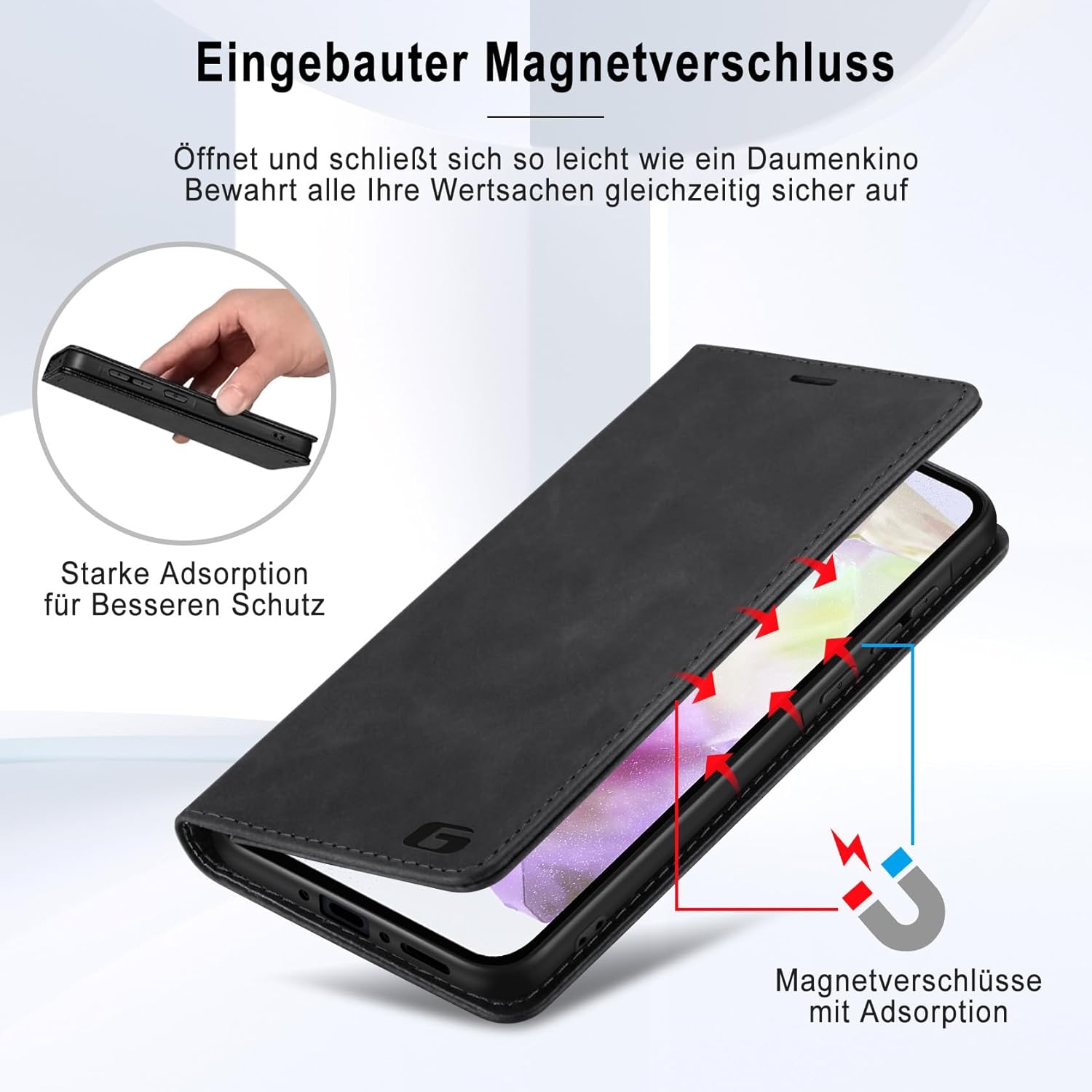 • Вградено магнитно закопчаване: Калъфът за мобилен телефон Guisessy за Samsung Galaxy S25 FE има вградено магнитно закопчаване, може лесно да се отваря и затваря, прави използването на телефона по-лесно и удобно. Вграденото силно магнитно закопчаване подобрява магнитната връзка, предпазва телефона ви, когато не се използва, като ефективно предотвратява случайно отваряне на калъфа.
