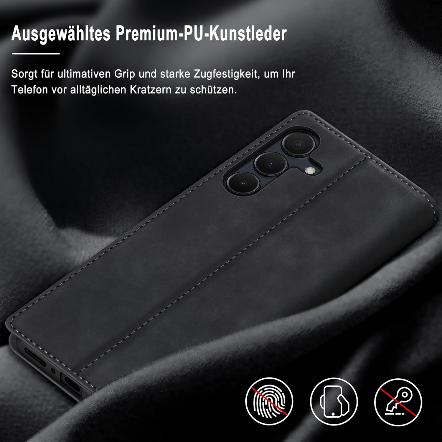 • Премиум PU кожа: Този калъф-портфейл за Samsung Galaxy S25 FE 5G е изработен от висококачествена изкуствена кожа PU и мек и гладък силиконов TPU. Елегантен външен вид, качествената PU има деликатен захват и силна якост на опън, но също така е удароустойчив и осигурява максимална защита от замърсявания, удари и драскотини, осигурявайки отлична 360-градусова всестранна защита.