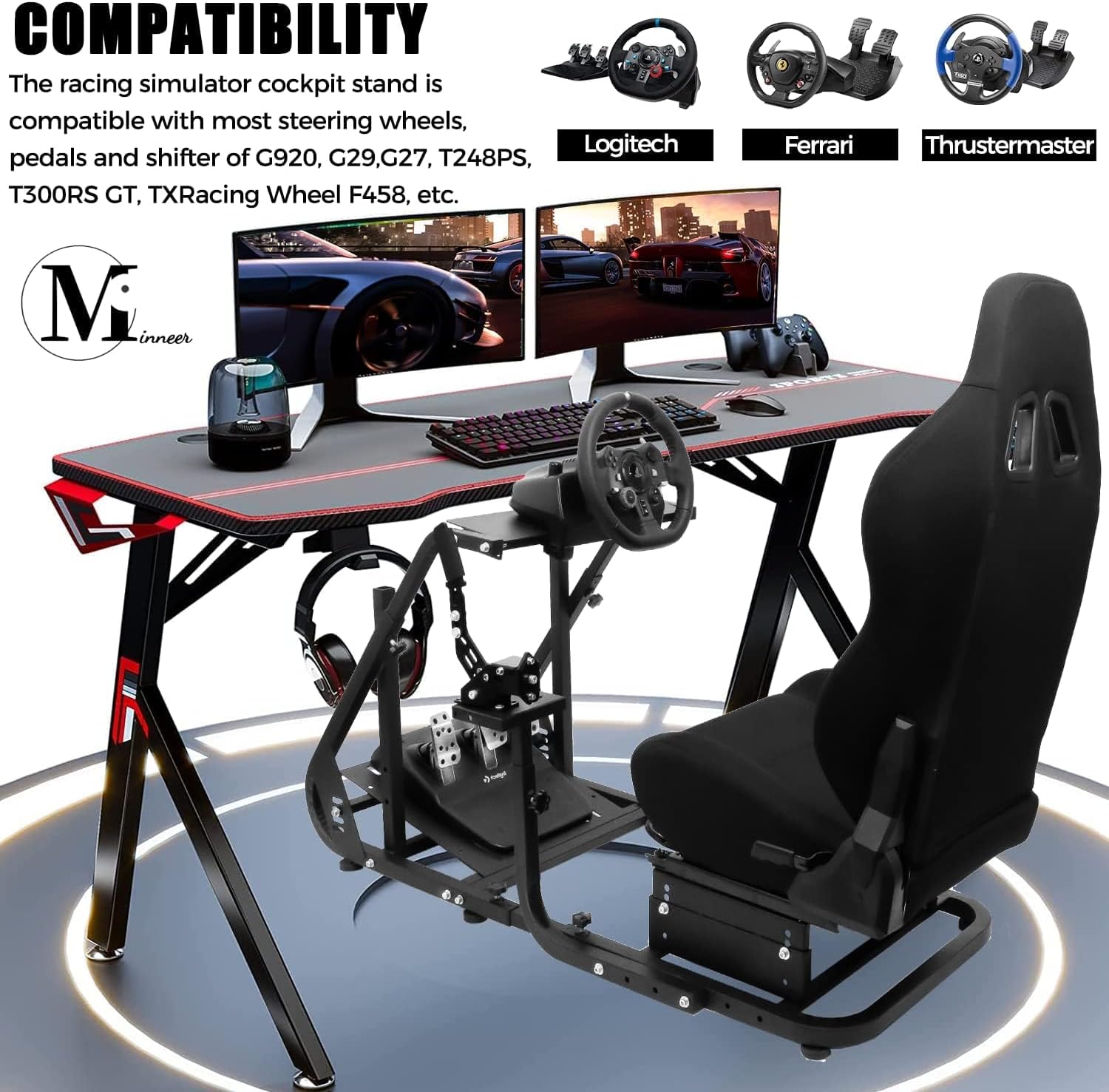 Кокпит Minneer Racing Simulator за Logitech G29/G920/G923 Thrustmaster T80/T150/T248/T300Base/T300RS GT/TSPCTSXW/Racer Cock/TXRW Base/TXRacingWheelF458 без състезателен волан, скоростен лост и...