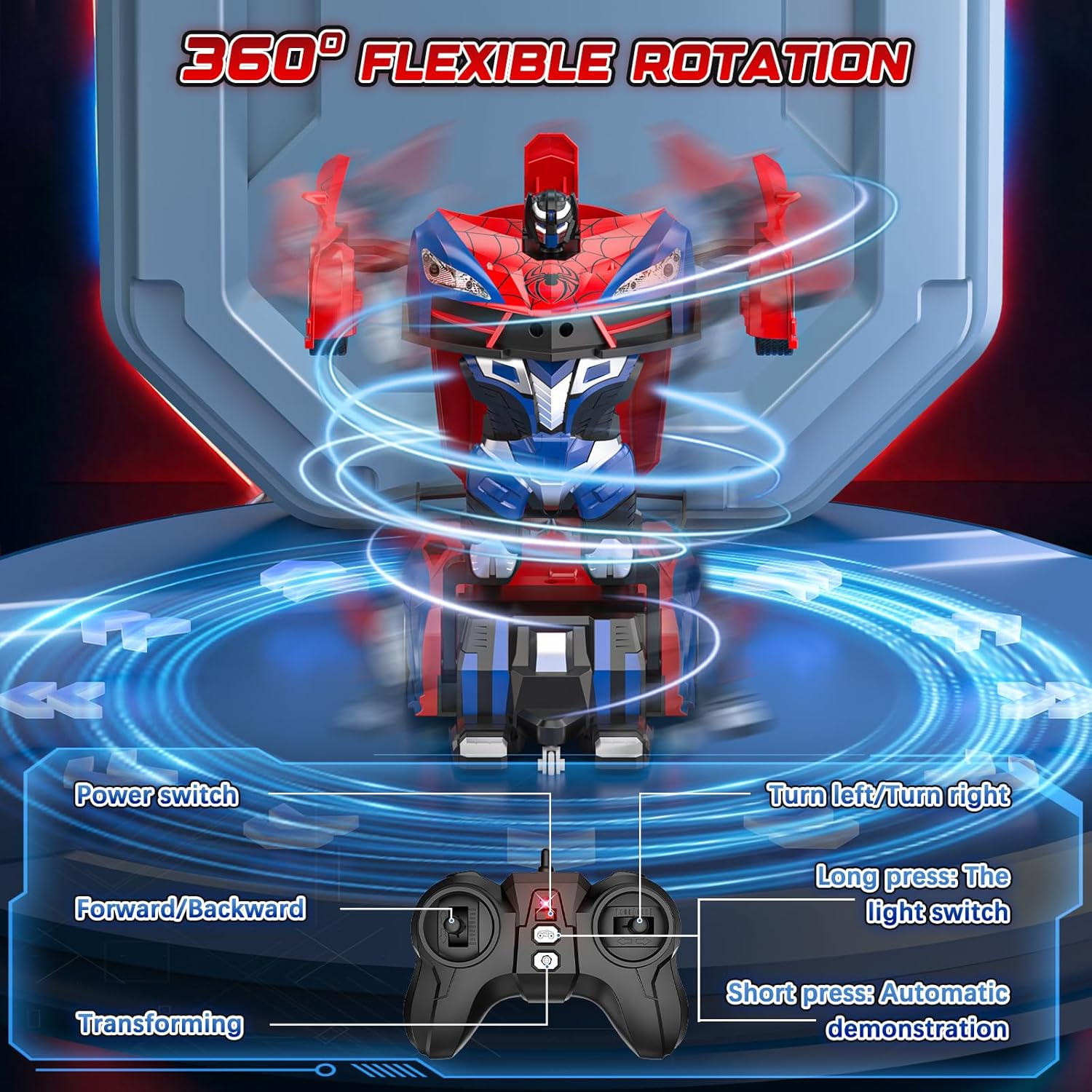 Кола с дистанционно управление Spider Transform - 2.4GHz RC играчка от 3, 4, 5, 6, 7, 8+ години, момче, момиче, 1:18, RC кола с трансформация с един ключ и 360° въртене, детски коледни подаръци за рожден ден.