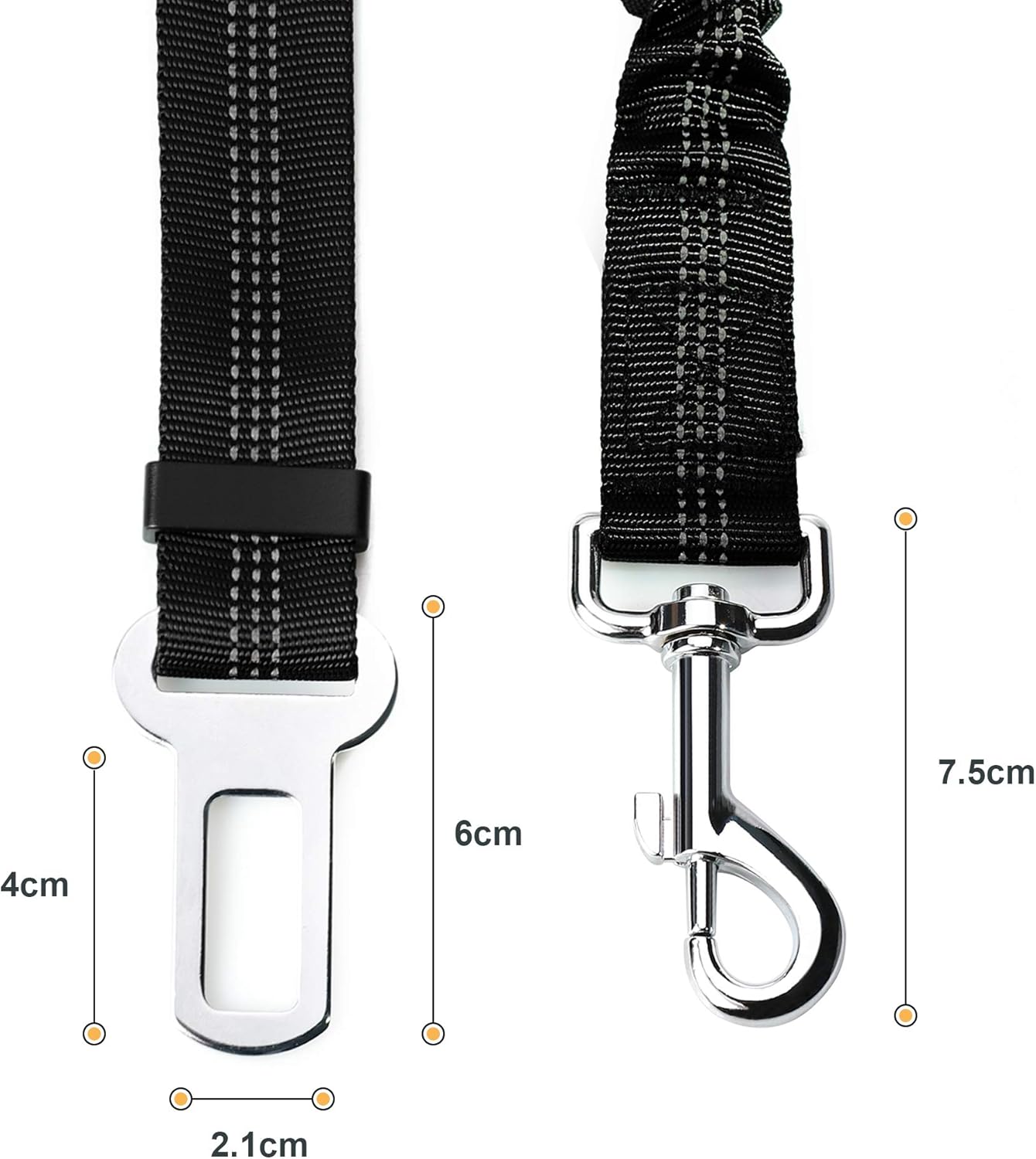 • Регулируема и с достатъчна свобода за кучета: дължината на каишката може да се регулира от 55 до 75 см. Вашето куче може да седи, да стои изправено и да лежи, но остава безопасно на задната седалка. Подходяща за малки и големи кучета.