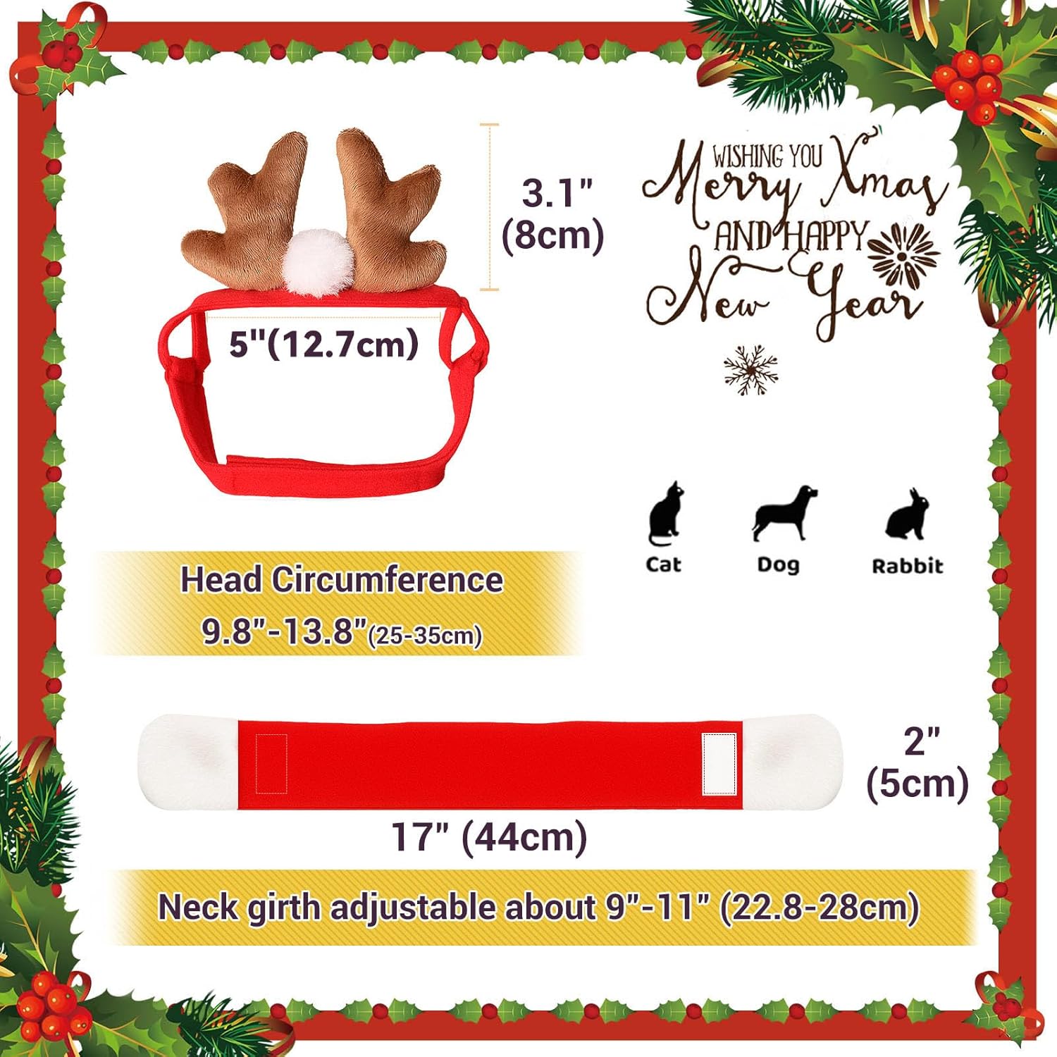 Коледен костюм на котка с рога и коледен шал, лента за глава за малко куче, шапка с рога и кученце, еленски костюм, котешки дрехи