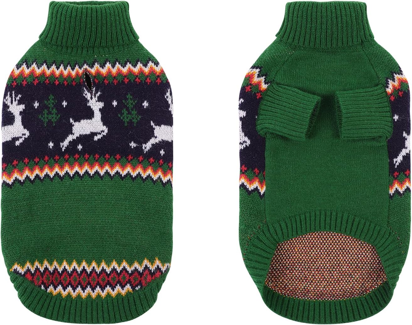 • Класически коледен пуловер: Коледният пуловер за кучета е с традиционен, класически коледен модел. Това е стилен и функционален коледен тоалет за домашни любимци. Високата яка осигурява допълнителна защита и топлина; перфектно зимно облекло за малки и средни кучета.