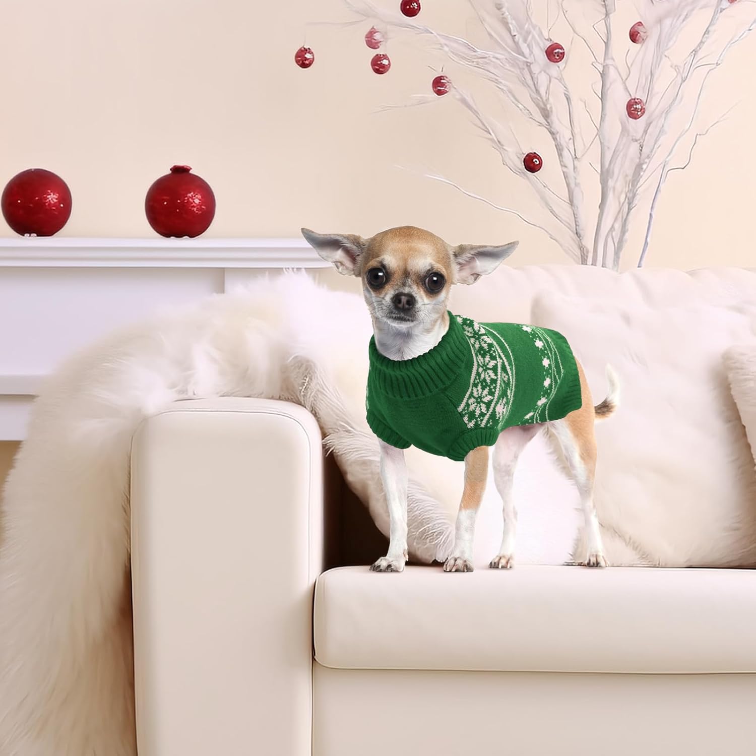 • Топлина и комфорт: изработен от висококачествени материали, пуловерът за кучета не само предлага празнична визия, но и държи кучето ви топло и уютно в студа