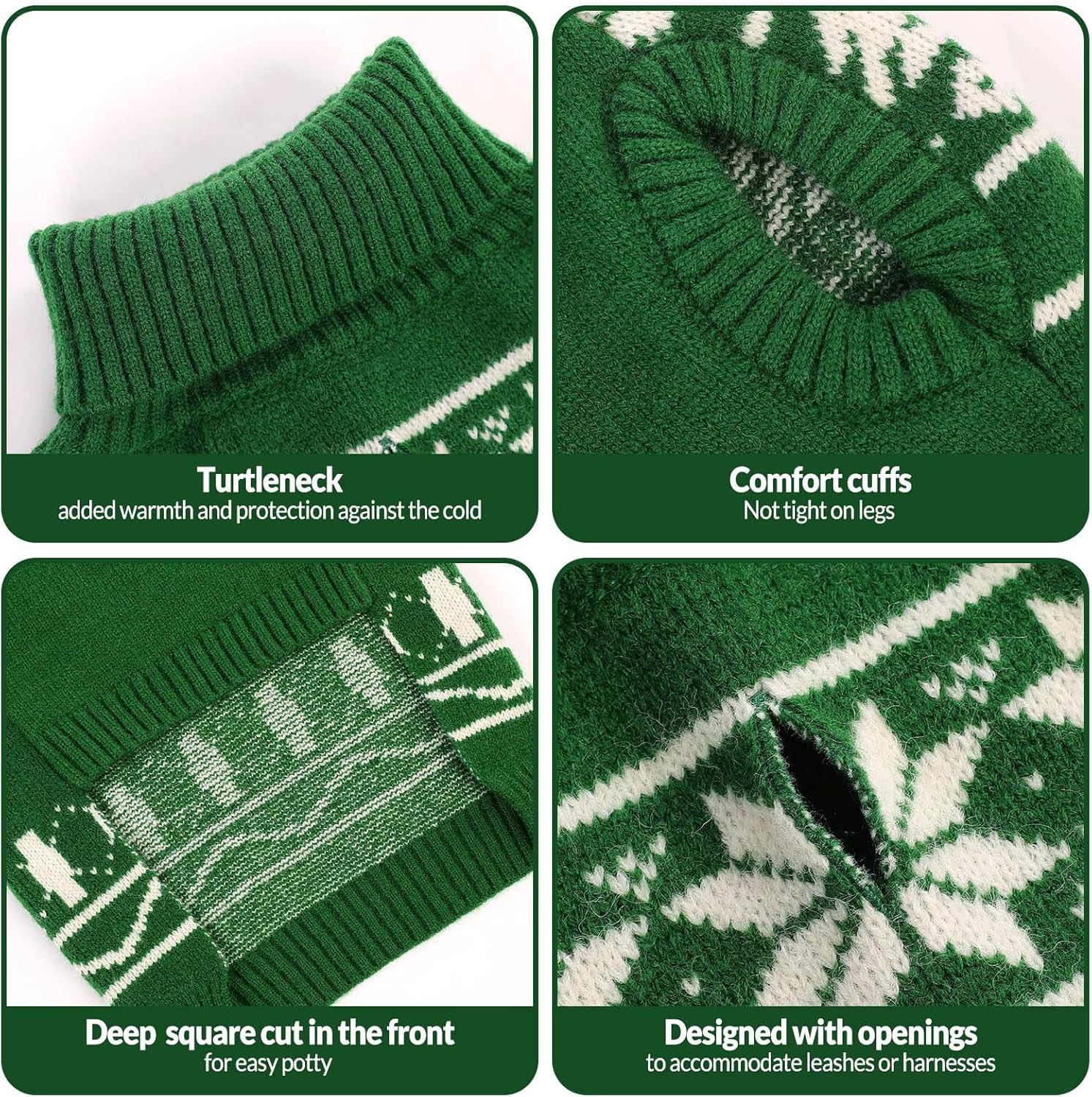 • Топлина и комфорт: изработен от висококачествени материали, пуловерът за кучета не само предлага празнична визия, но и държи кучето ви топло и уютно в студа