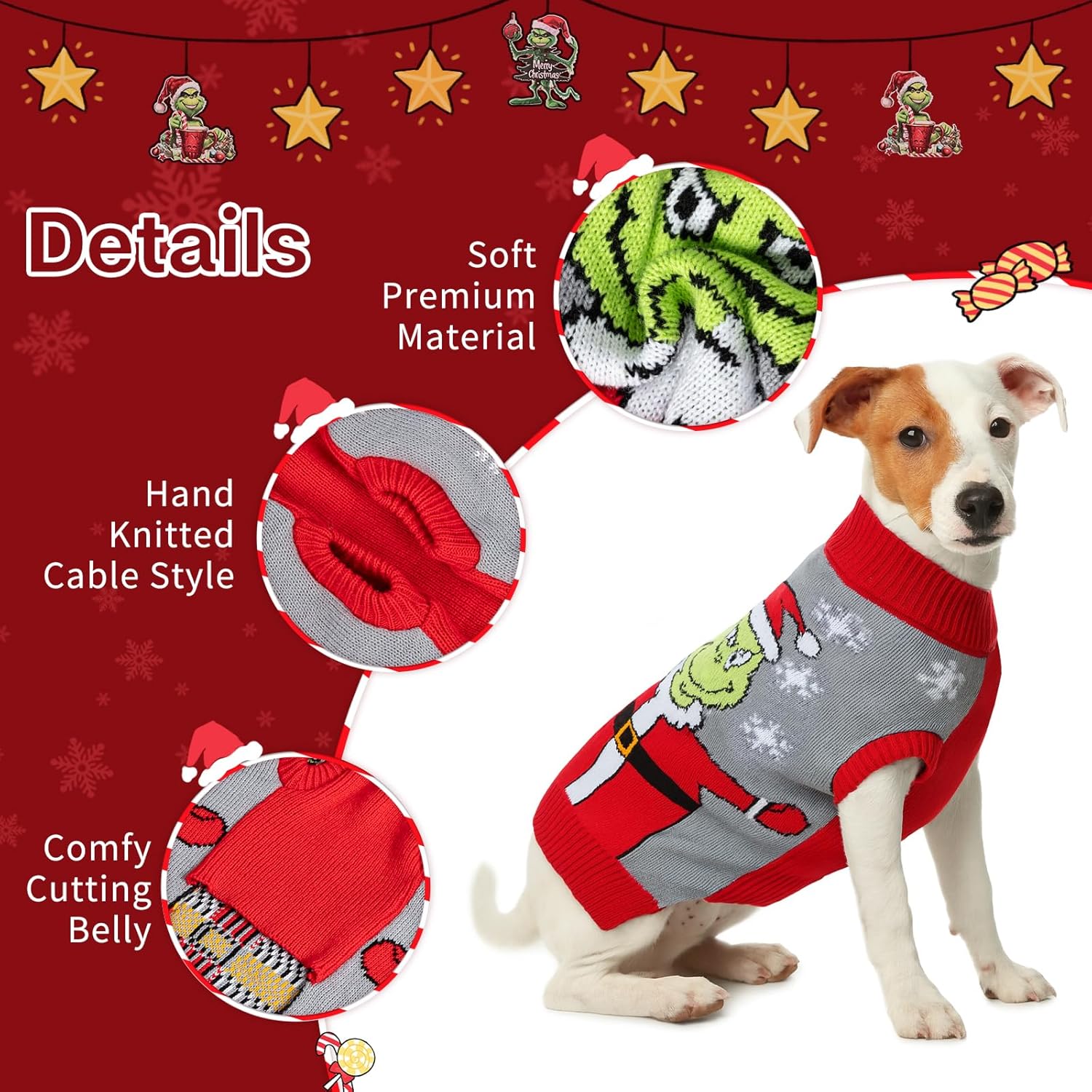 • Лесна грижа за пуловера на вашето куче: Предлага се в пет размера за малки, средни и големи породи. Може да се пере в пералня със студена вода или на ръка с подобни цветове за безпроблемна грижа за коледния костюм на вашето куче.