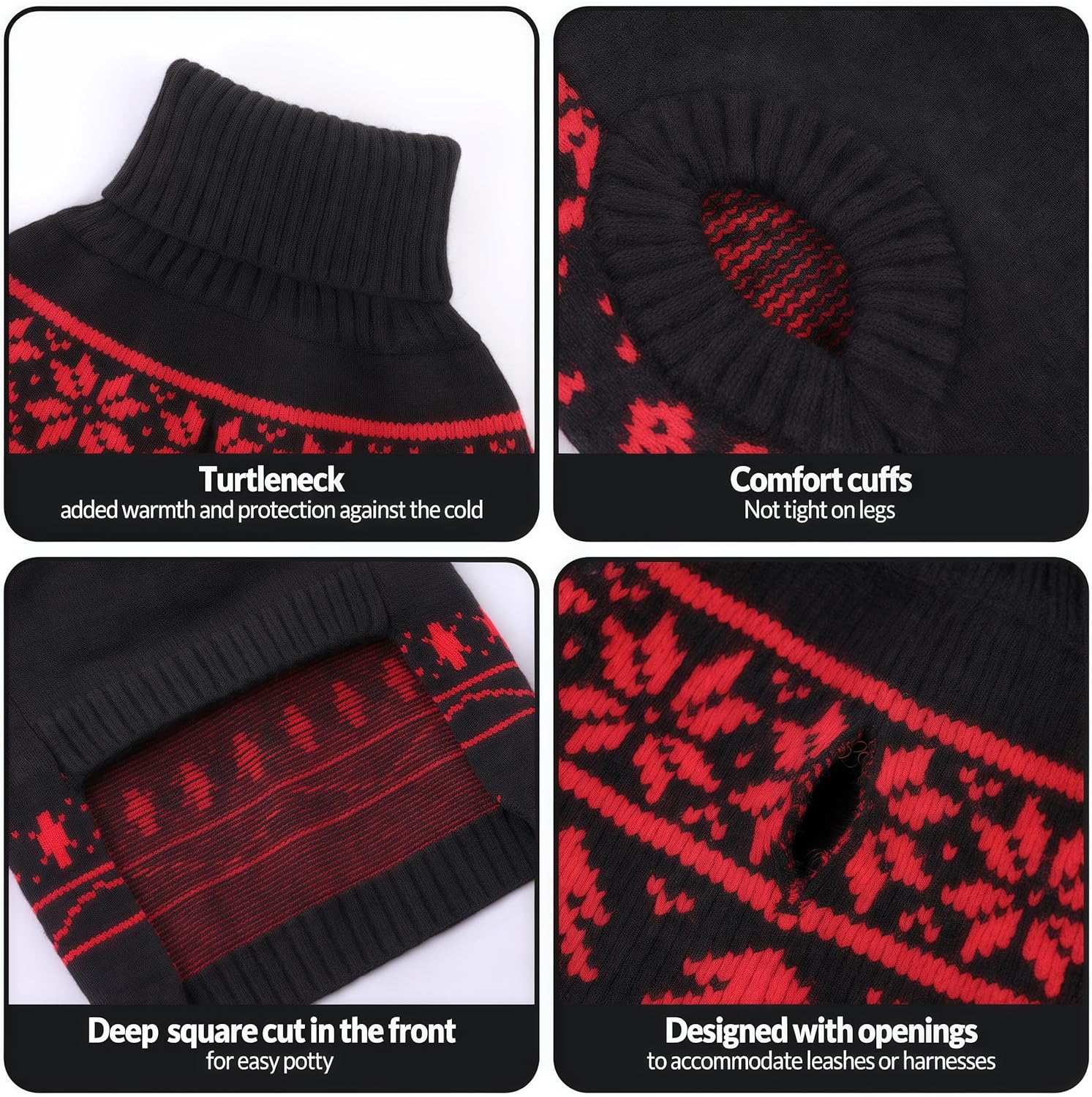 • Топлина и комфорт: изработен от висококачествени материали, пуловерът за кучета не само предлага празнична визия, но и държи кучето ви топло и уютно в студа