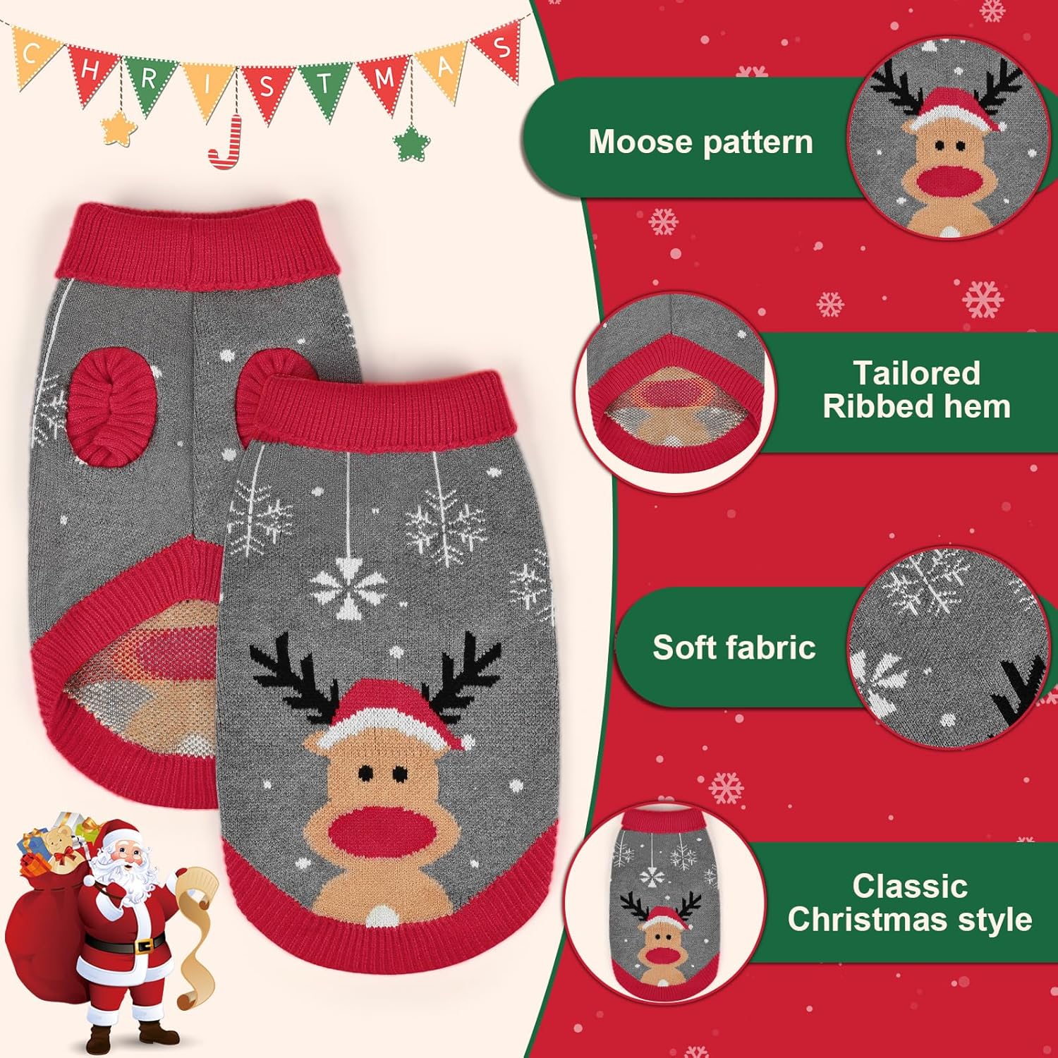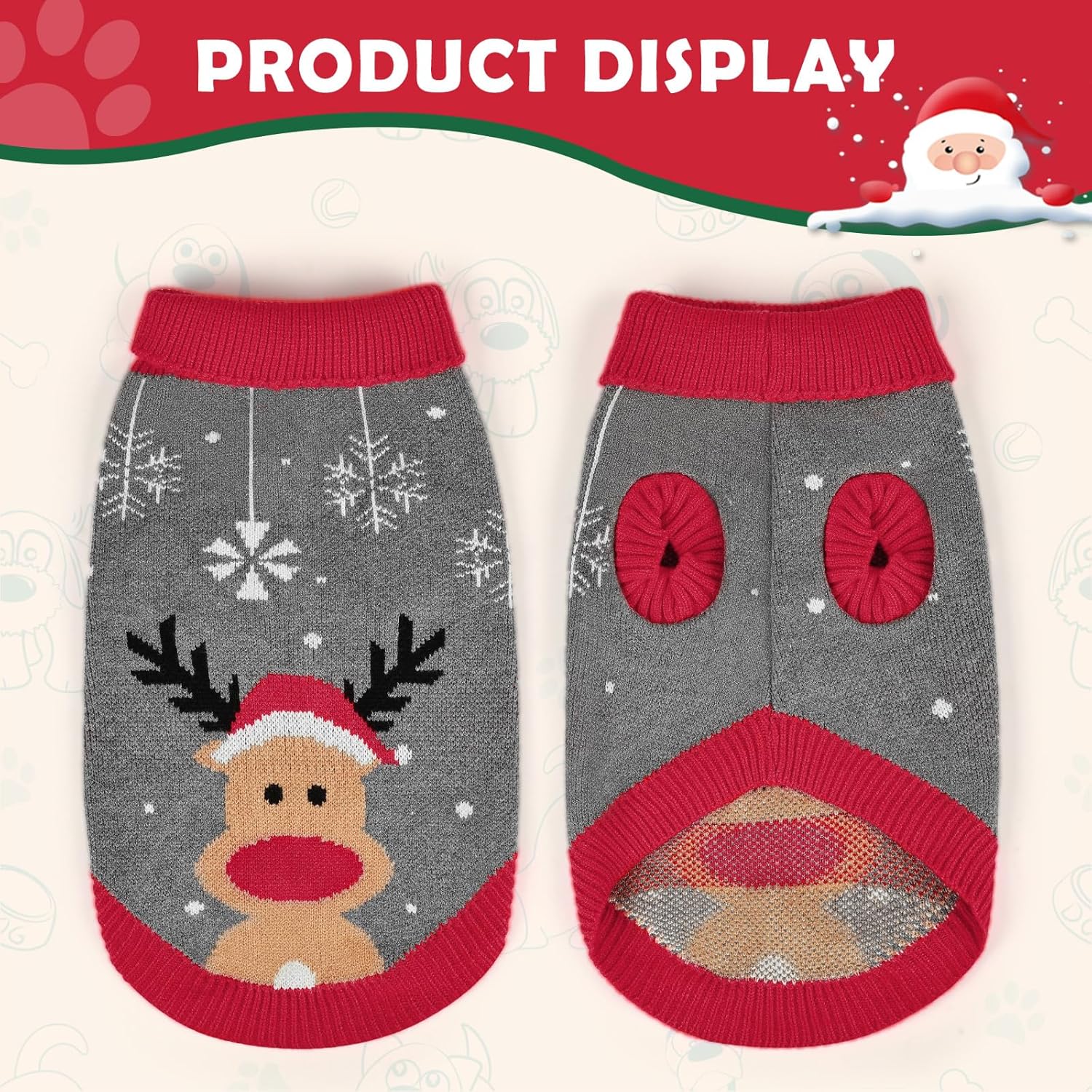 Коледен пуловер за кучета, Зимен топъл пуловер за кучета с поло яка, Подаръци за малки и средни кучета, Малък