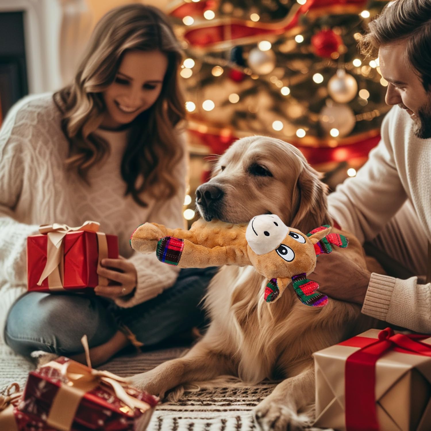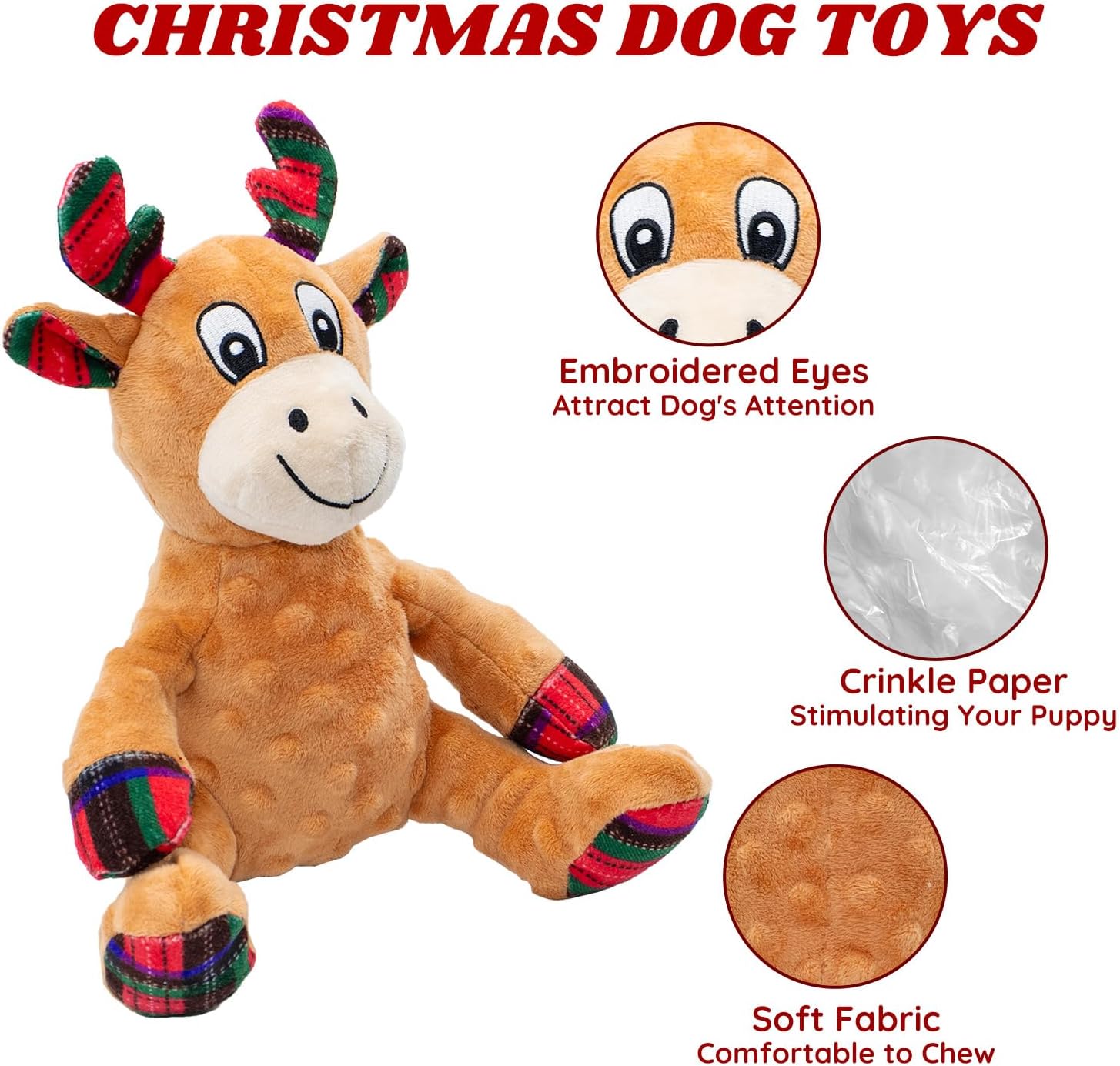 Коледна играчка за кучета във формата на елени с пищялка, плюшена играчка за кучета с набръчкана хартия, мека играчка за домашни любимци за зъби, интерактивна плюшена играчка за кучета за малки и средни кучета