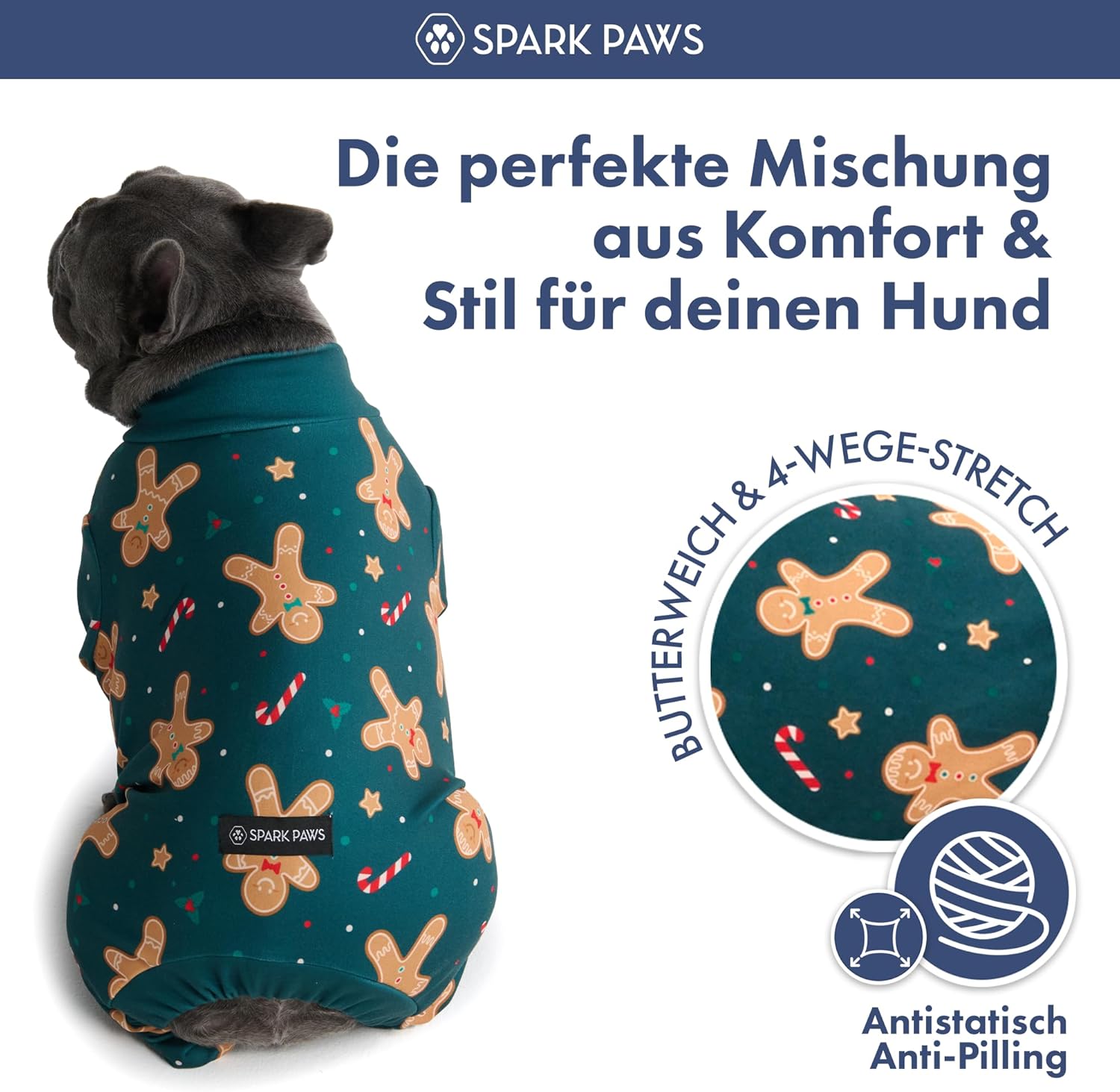 Коледна пижама за кучета Spark Paws, ултра мека и разтеглива в 4 посоки, малка, средна, голяма, пижама с джинджифилов човечец, малка