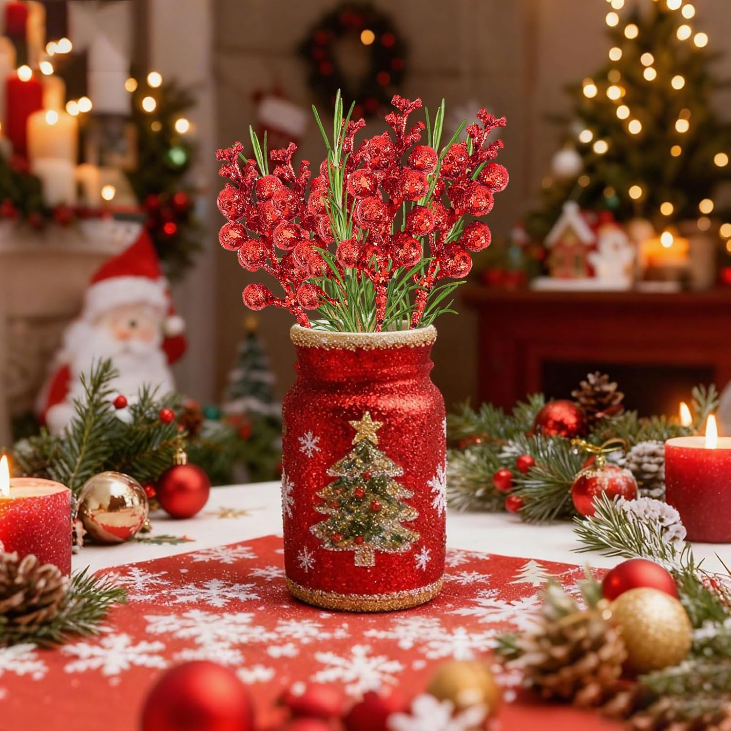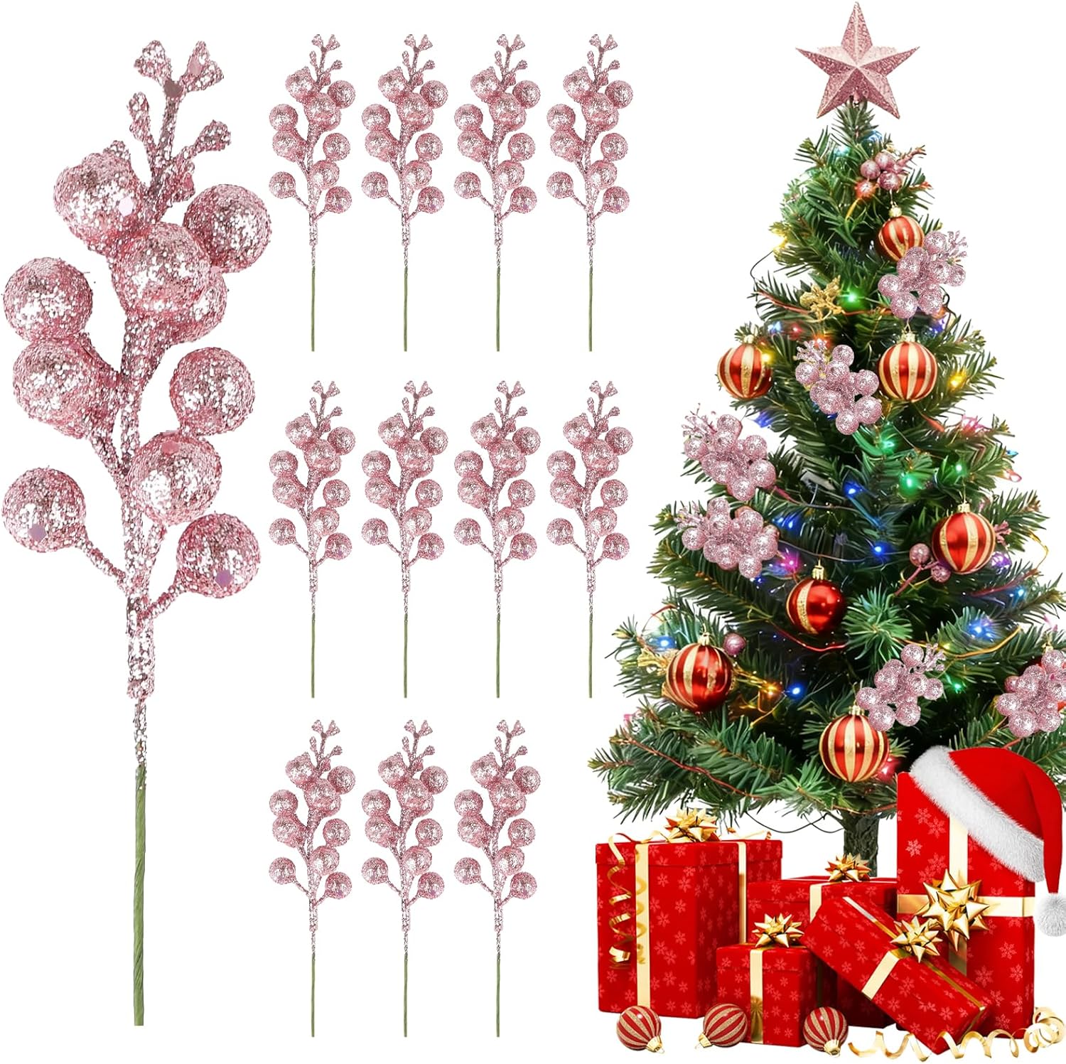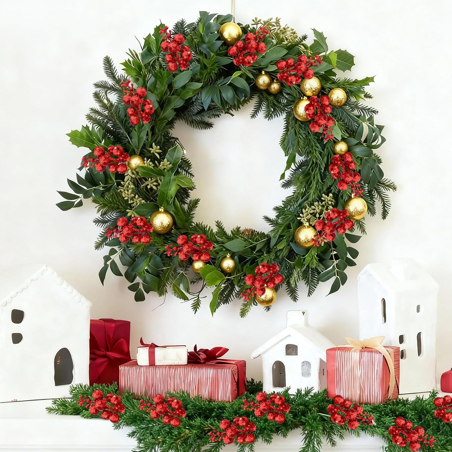 1. Glitter can easily peel off on the surface of the berry branches. This is normal and does not affect use.