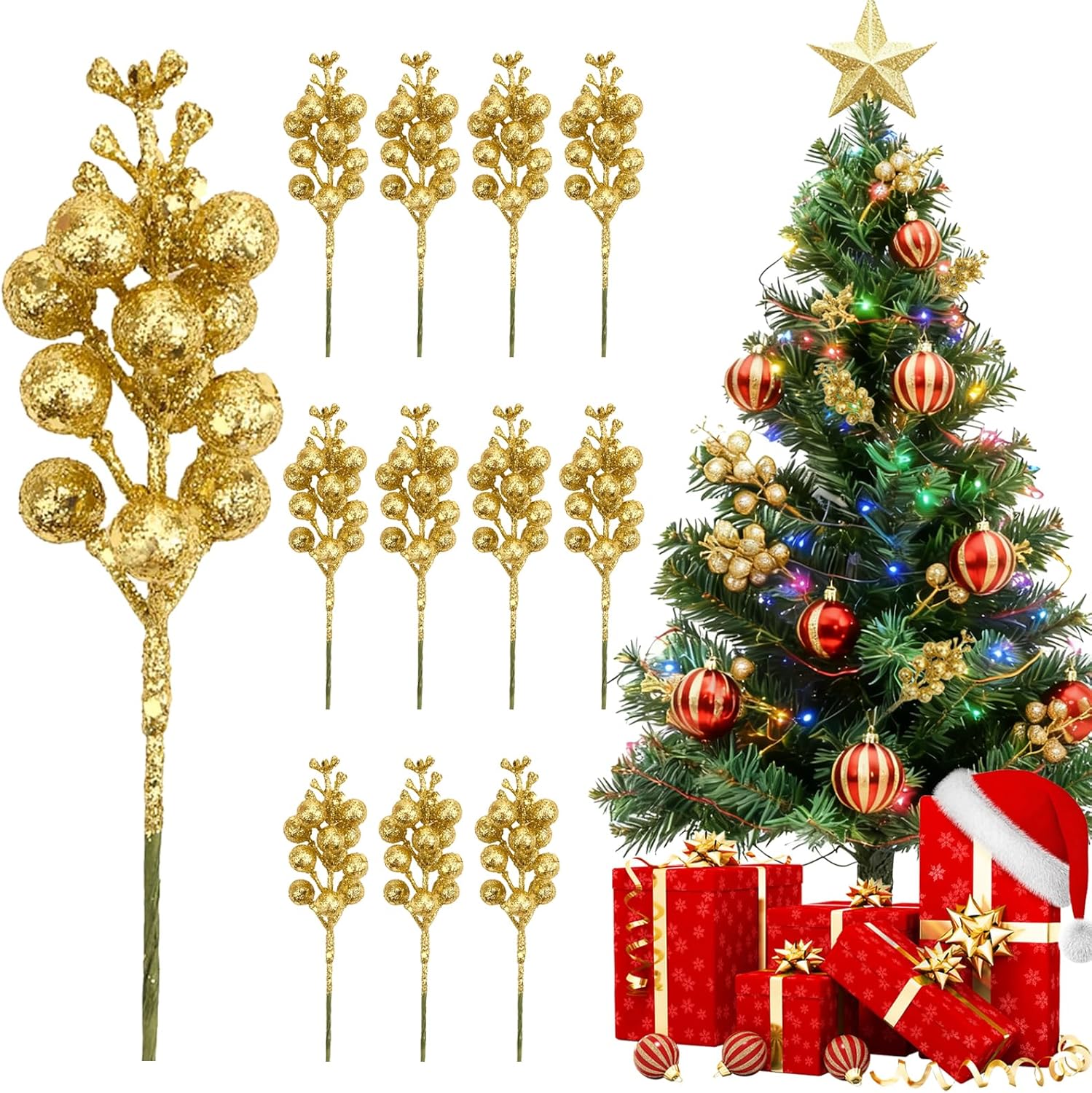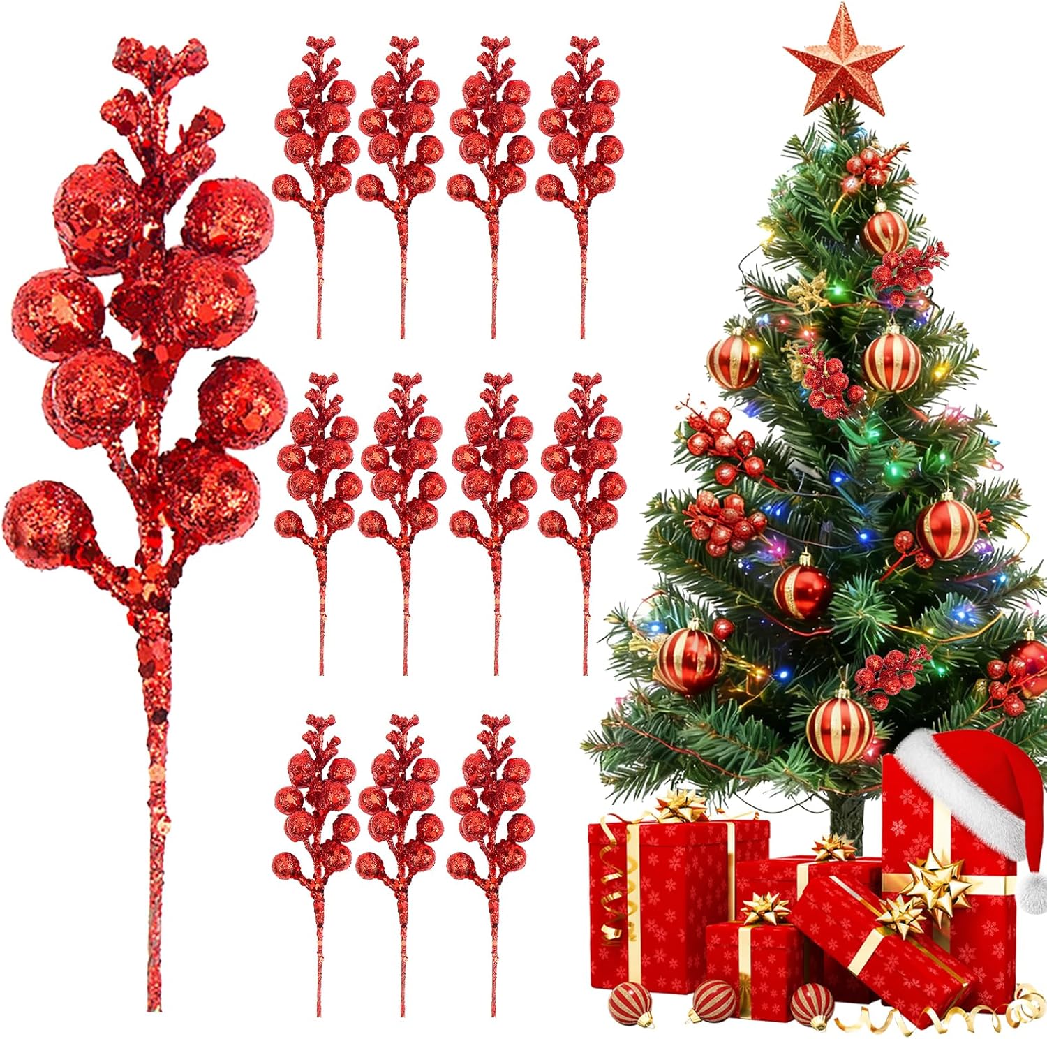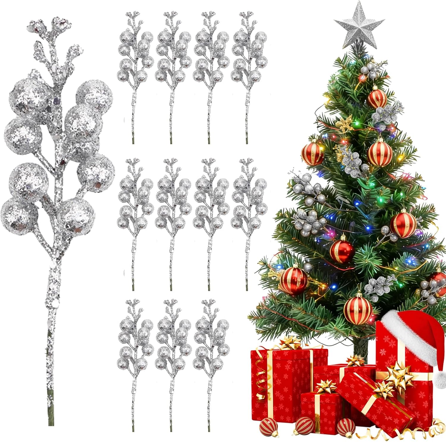 1. Glitter can easily peel off on the surface of the berry branches. This is normal and does not affect use.