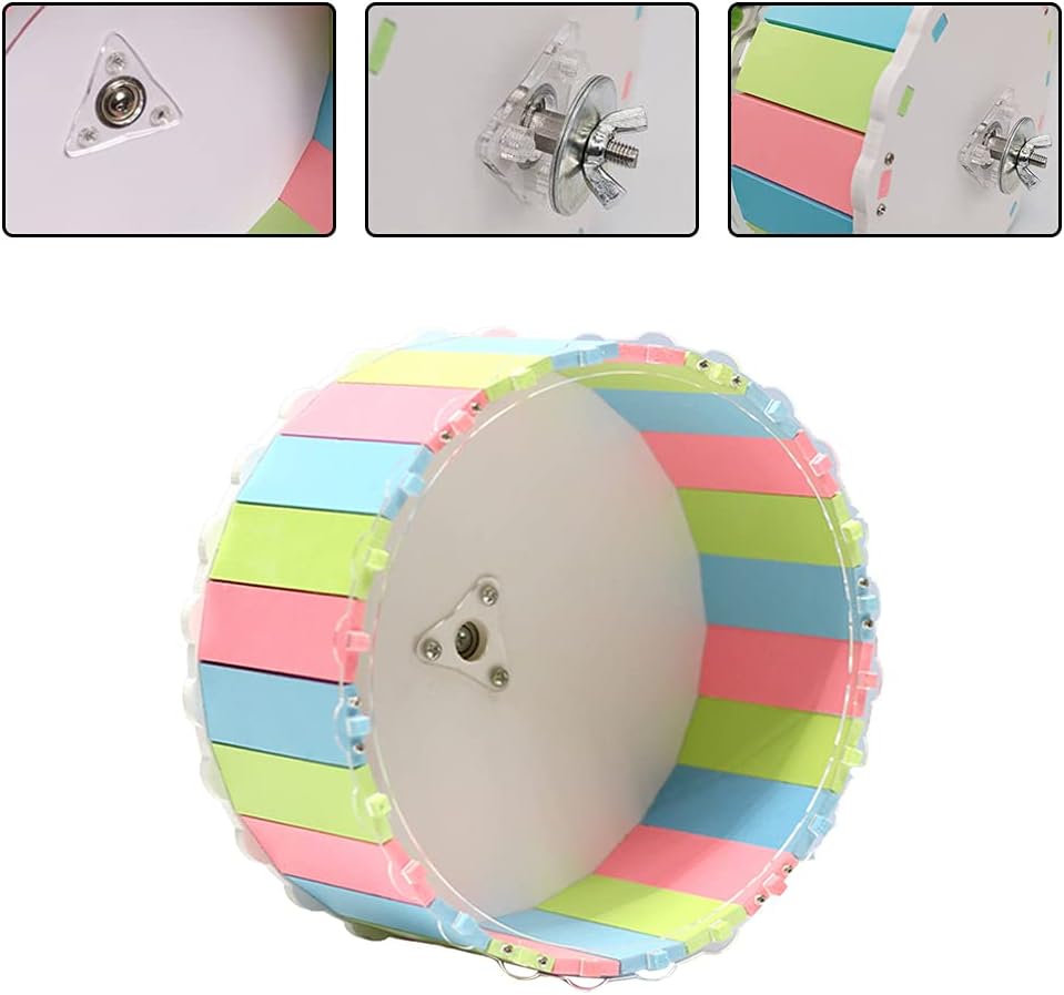 • Дизайн с шарка: това безшумно въртящо се колело за хамстери има вълнообразна шарка, която е неплъзгаща се и безопасна за хамстери. Ръбовете са гладки и няма да наранят краката на вашия домашен любимец. Лагерите имат добър амортисьорен ефект и дълъг експлоатационен живот.