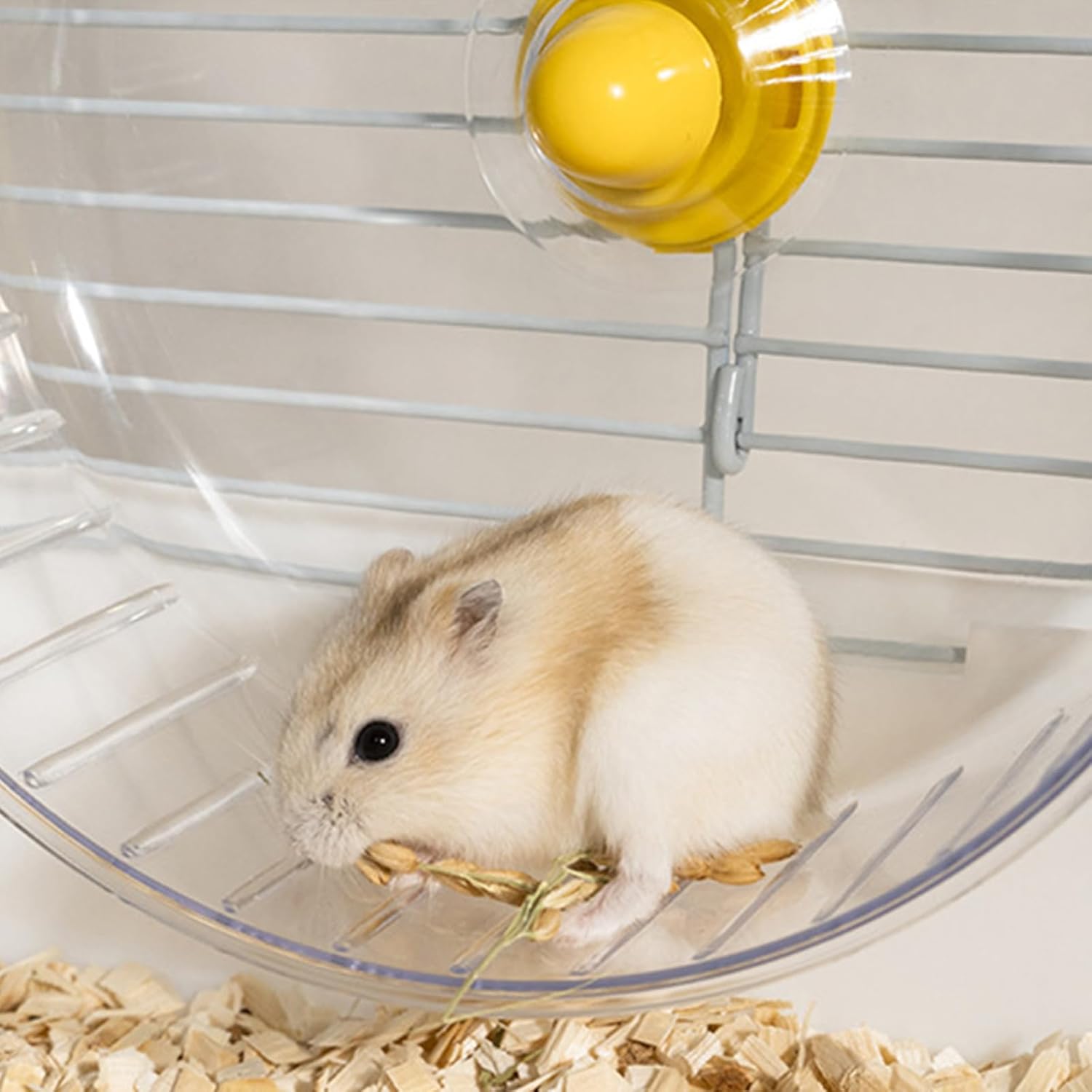1. Дизайн с прозрачен материал: прозрачният дизайн на колелото за хамстери с обтекаем външен вид ви позволява ясно да наблюдавате ярките движения на златната мечка и хамстера и да увеличите интерактивното забавление.