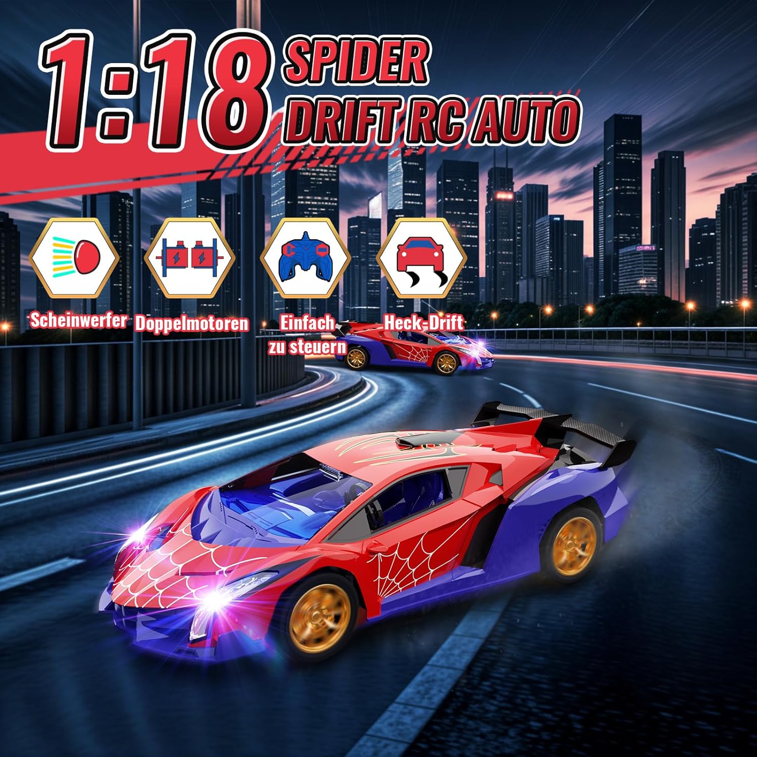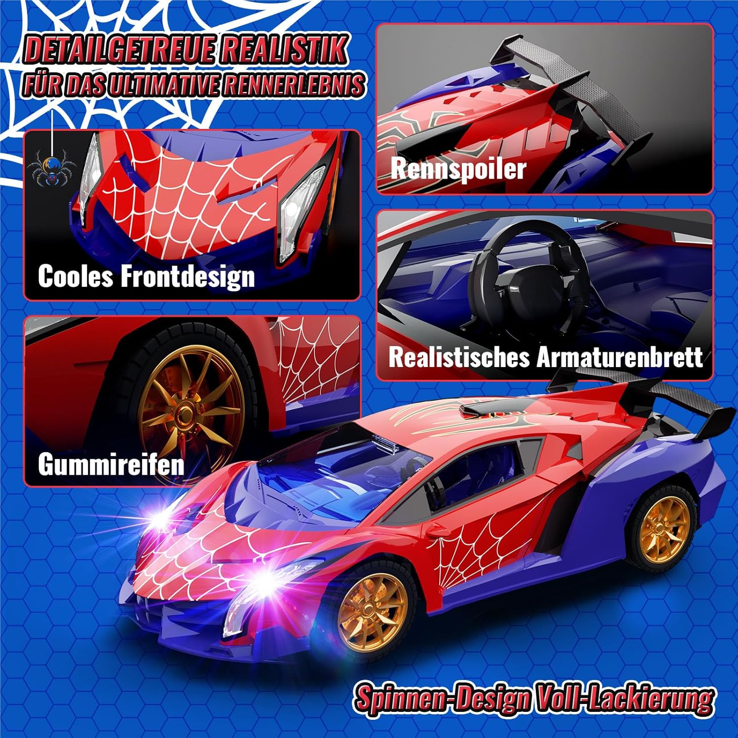 Количка с дистанционно управление с паяжина и дизайн с паяжина, RC количка за дрифт 1:16 играчка от 3, 4, 5, 6, 7, 8, 9, 10 години, подарък за момче, момче, момиче 3-12 години, детски игри, подарък за рожден ден.