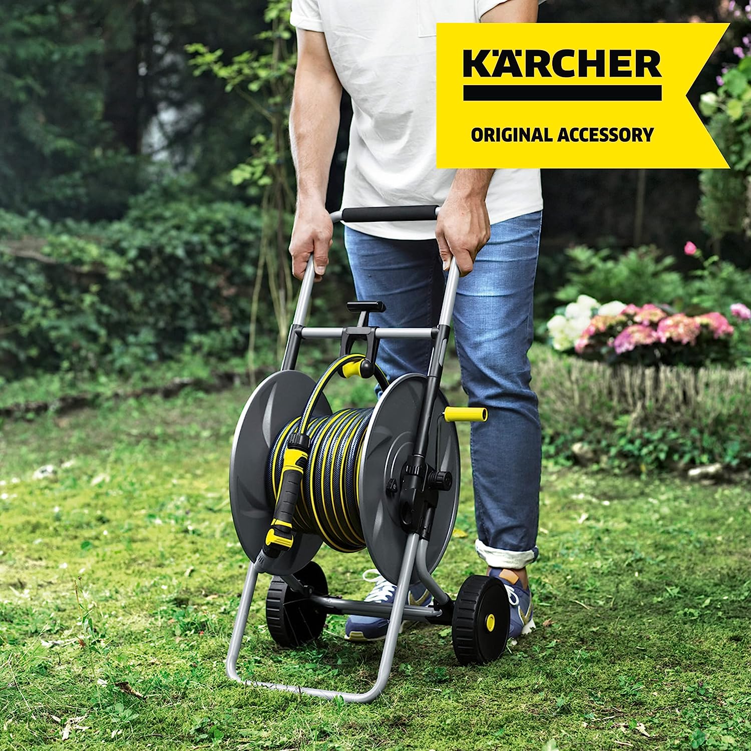 Количка за маркуч Karcher HT80 Premium, 80м капацитет, 20м маркуч, Колелца, Регулируема дръжка, Водач за навиване