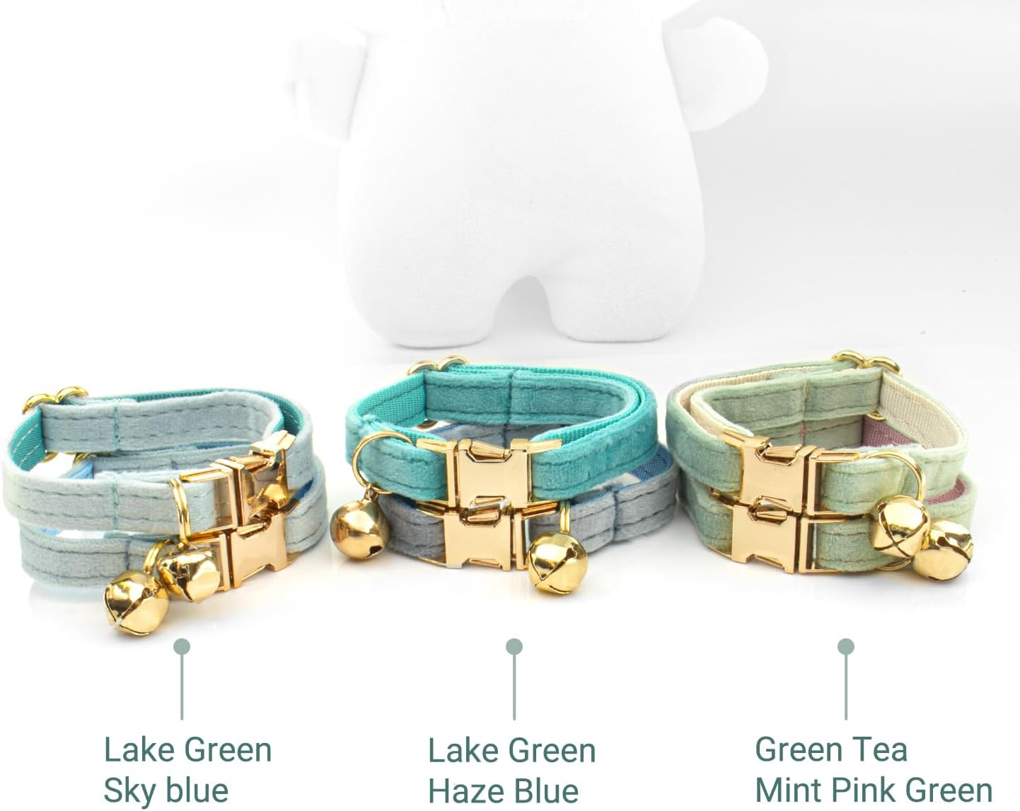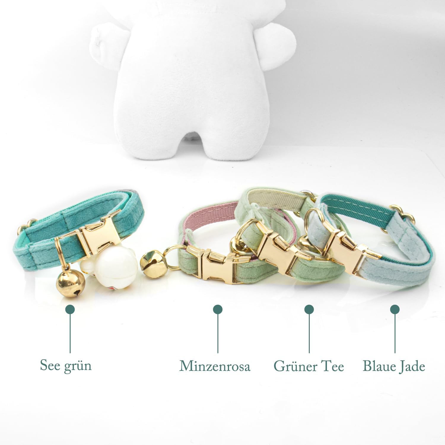 Колие от мека изкуствена кадифена котка, персонализирани етикети за котки, дължина на врата 16-32 см (езерно зелено)
