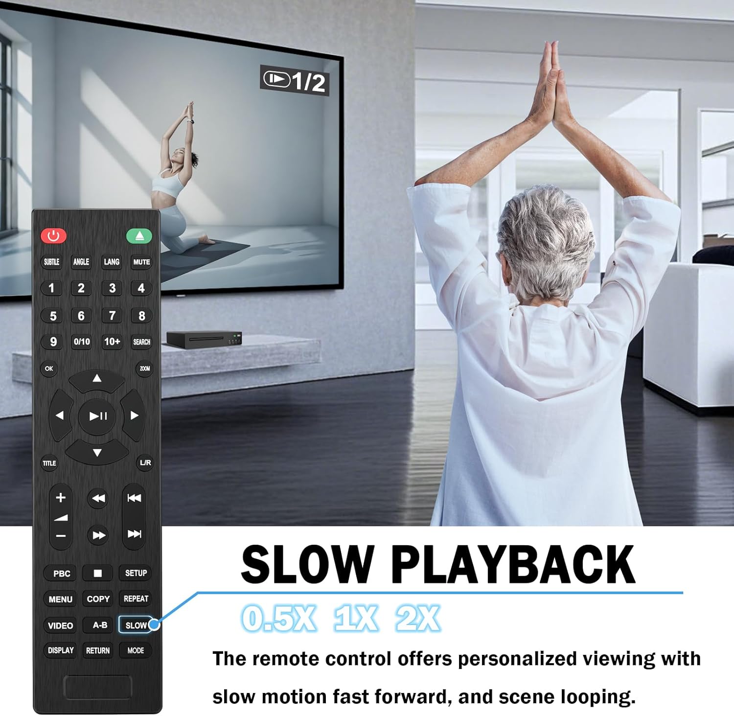 • Практична функция: този мини DVD плейър има интелигентна функция за възпроизвеждане с памет, точно записва позицията на спиране на възпроизвеждането, независимо дали е временна пауза или случайно изключване, и след това може да се върне към първоначалния напредък за секунди. До 5 настройки на скоростта: 0.5X/0.75X/1X/1.5X/2X. Скоростта може да бъде забавена за спортни тренировки и изучаване на езици и ускорена за прескачане на дълги епизоди от филмови класики.
