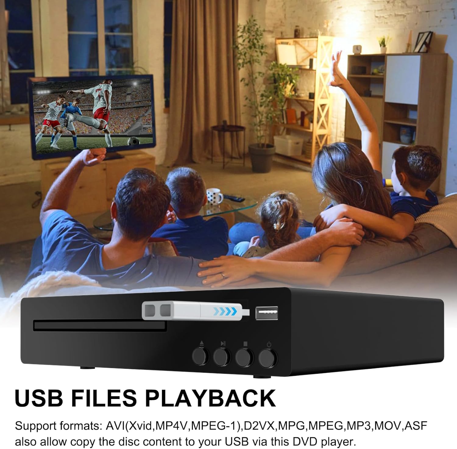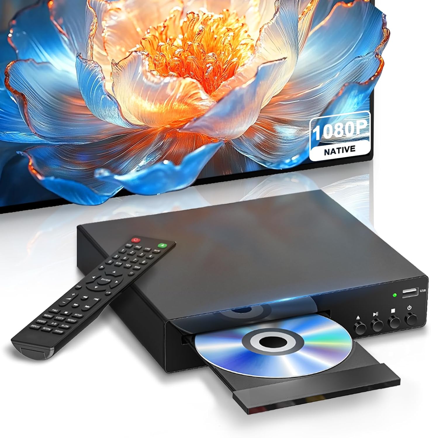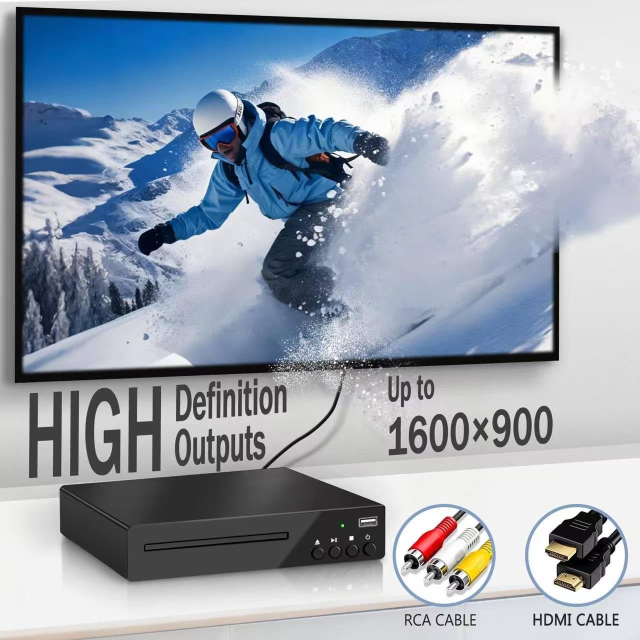 Компактен DVD плейър с HDMI порт, Full HD 1080P DVD CD плейър за телевизор, поддържащ NTSC/PAL система, вграден USB порт, DVD плейъри без регионални ограничения, съвместими със Smart TV/озвучителна система
