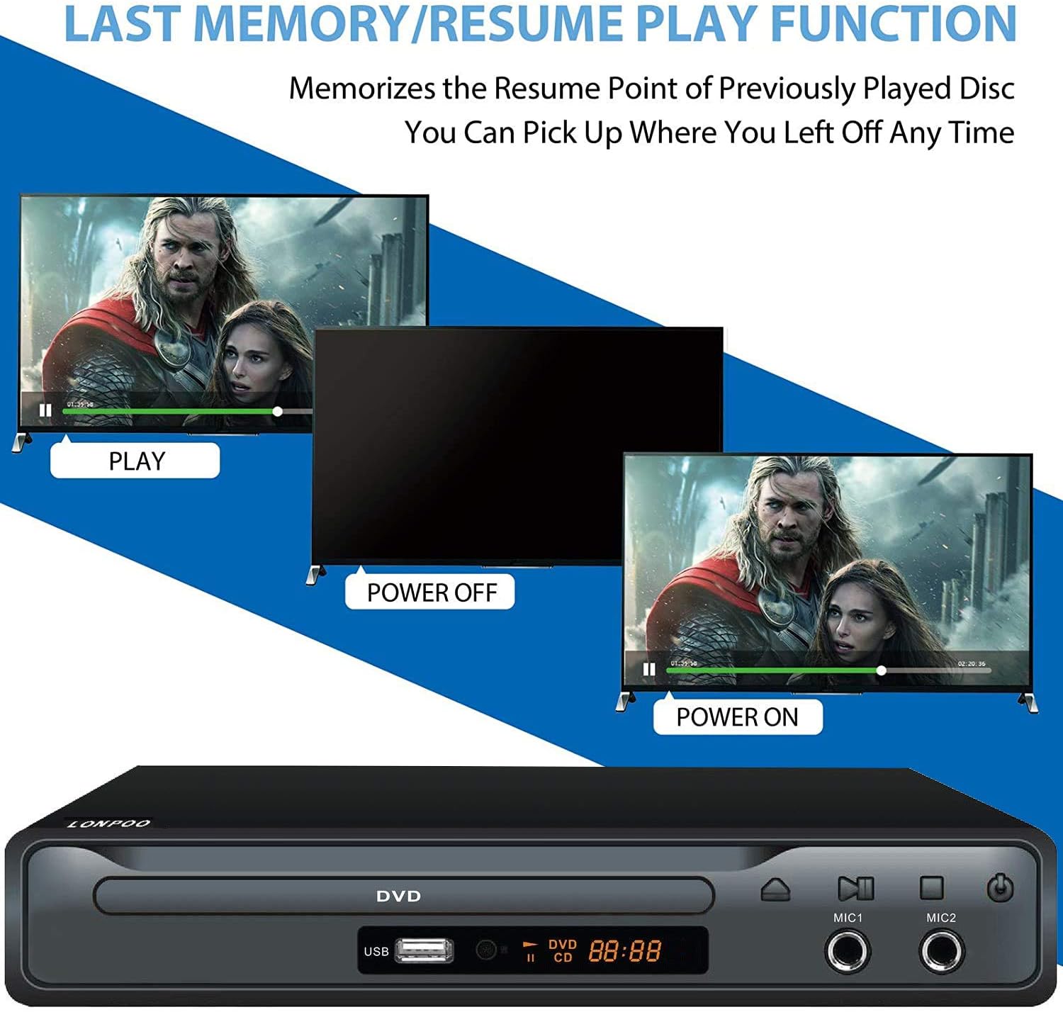 Предлага се за възпроизвеждане на DVD от всички региони (1-6 с изключение на CPRM) и поддържани дискови формати: CD, DVD, DVD-R/DVD+R, DVD-RW/+RW, CD-R/CD-RW, VCD, SVCD.