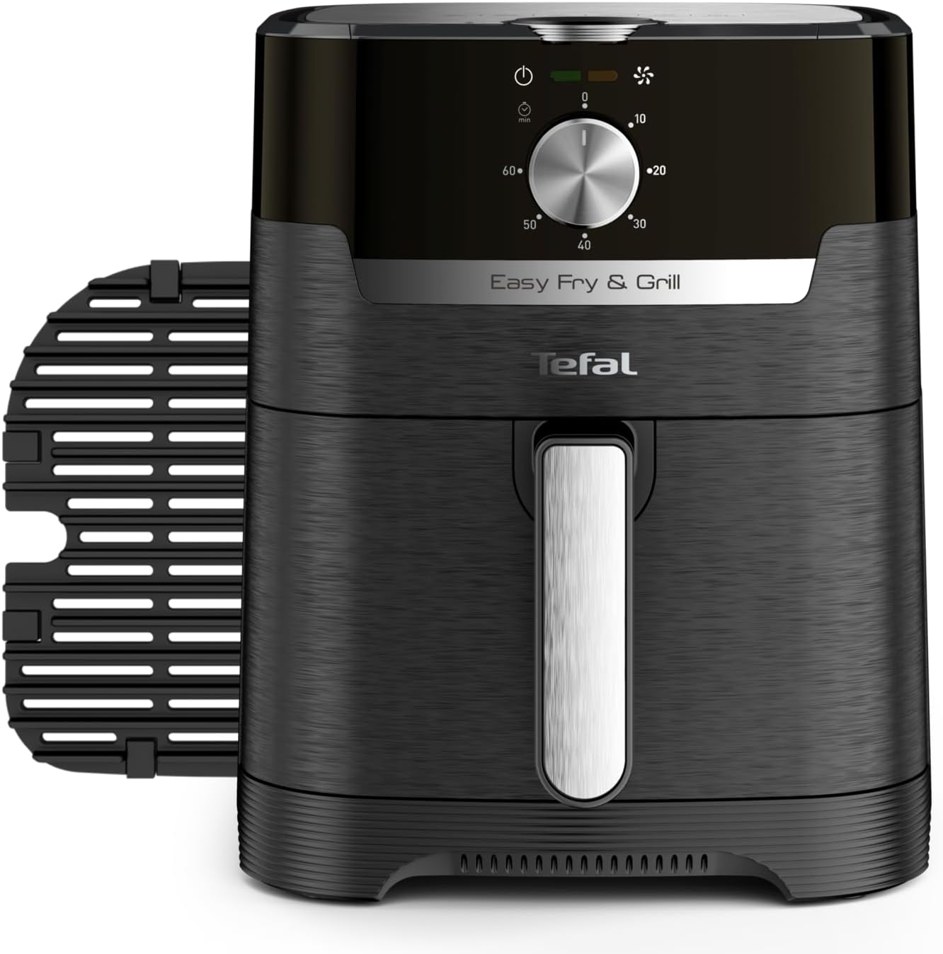 Компактен фритюрник с горещ въздух Tefal Easy Fry с капацитет 3 л, 10 автоматични програми за готвене, сензорен дисплей, пестене на време и енергия, незалепващо покритие, Nube, EY145A