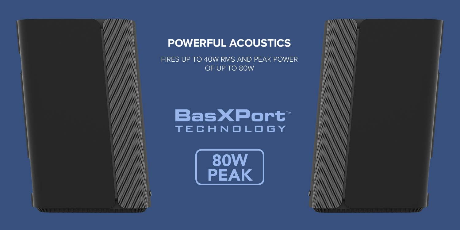 Акустична проникваща мощност до 40W RMS при 80W Peak - слушайте театрални звуци, изпълващи стаята, у дома.
