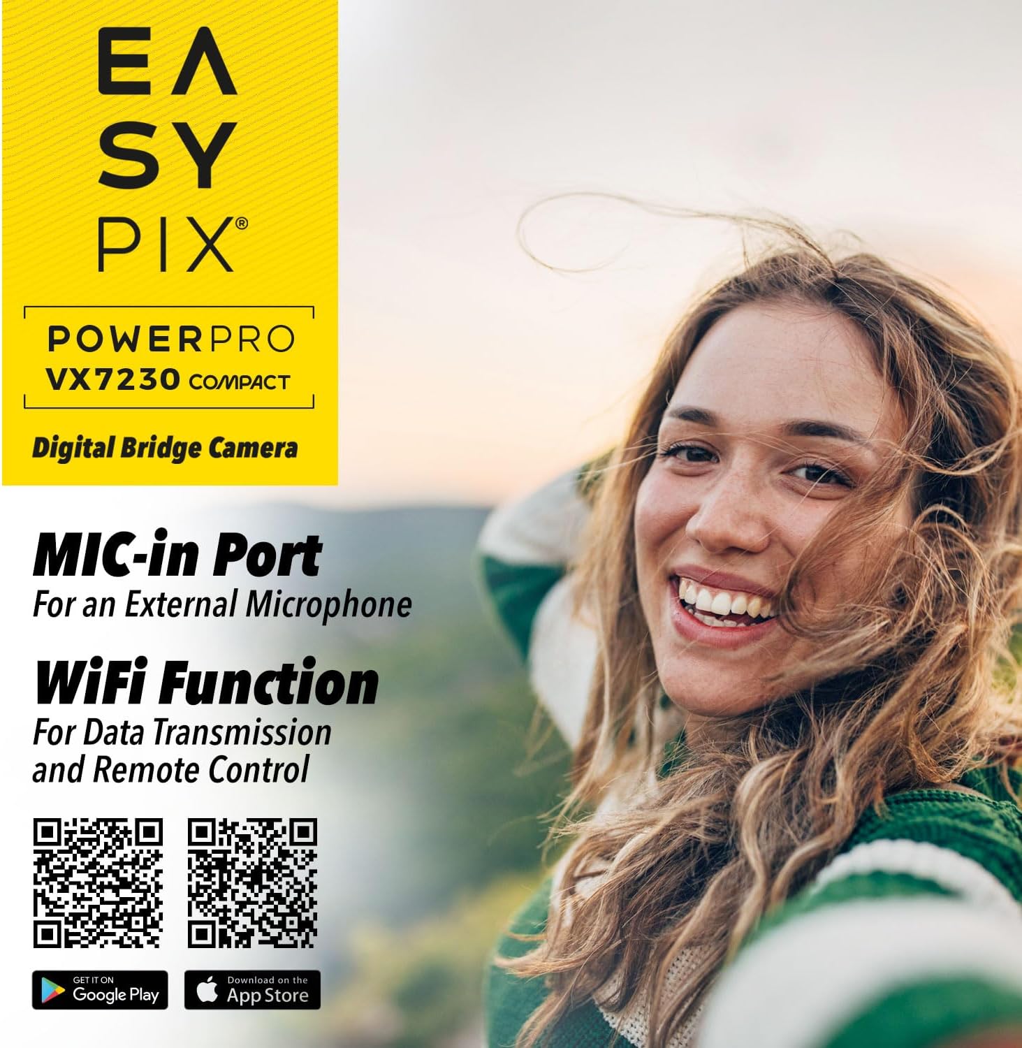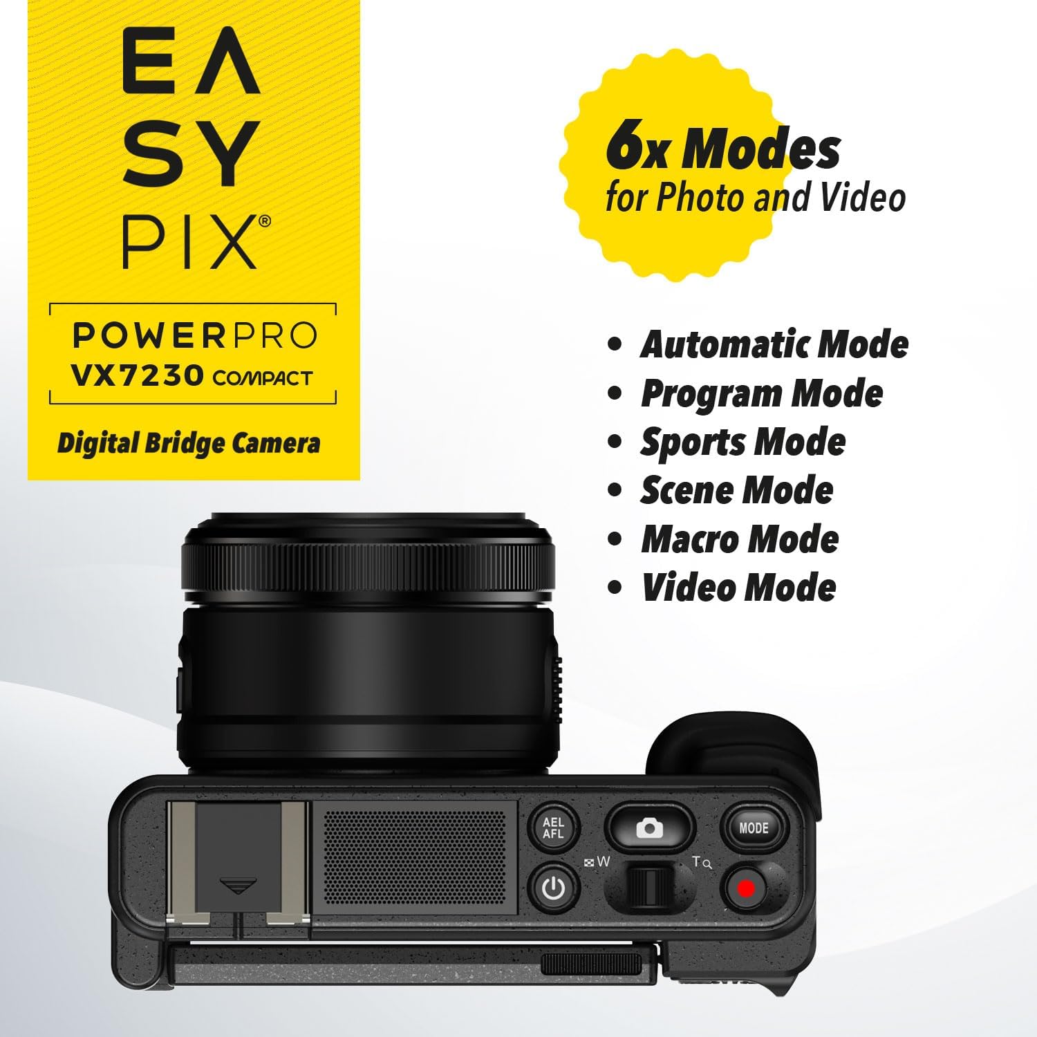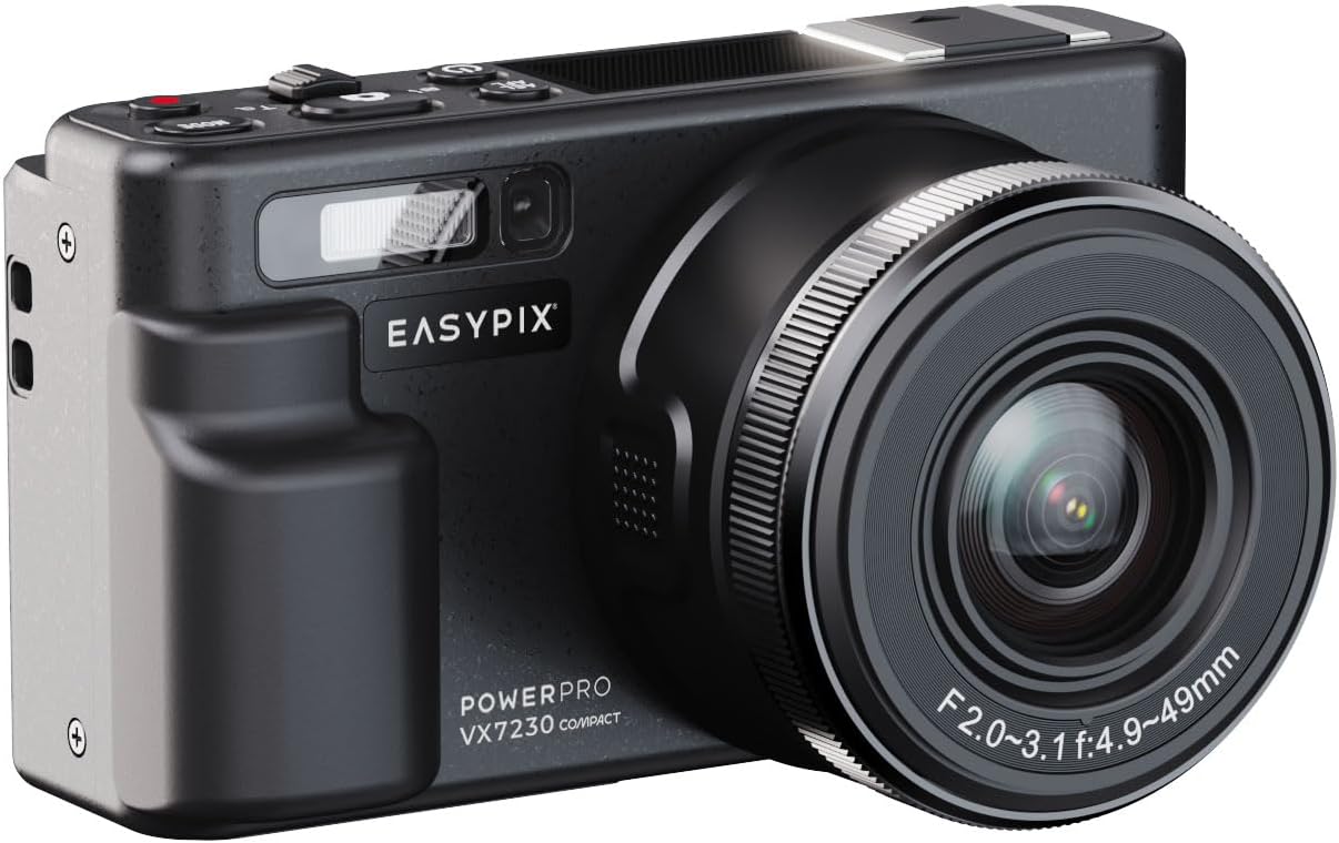 Easypix PowerPro VX7230 Compact е компактен фотоапарат със сгъваем екран, вградена WiFi функция и шест режима на снимане. 10-кратното оптично увеличение приближава обекта, а 4-кратното цифрово увеличение осигурява още по-голяма гъвкавост – идеален спътник за пътуване и творчески проекти.