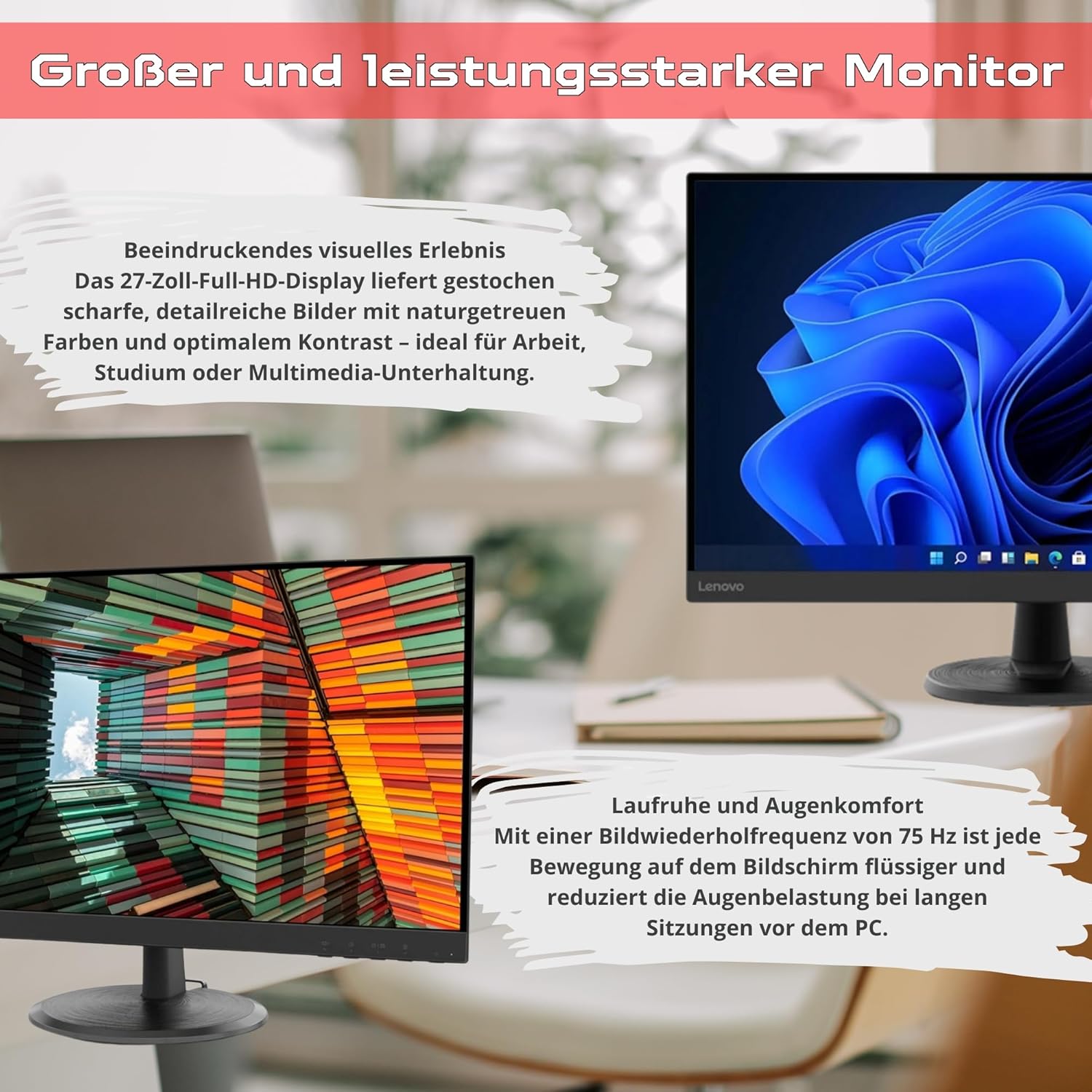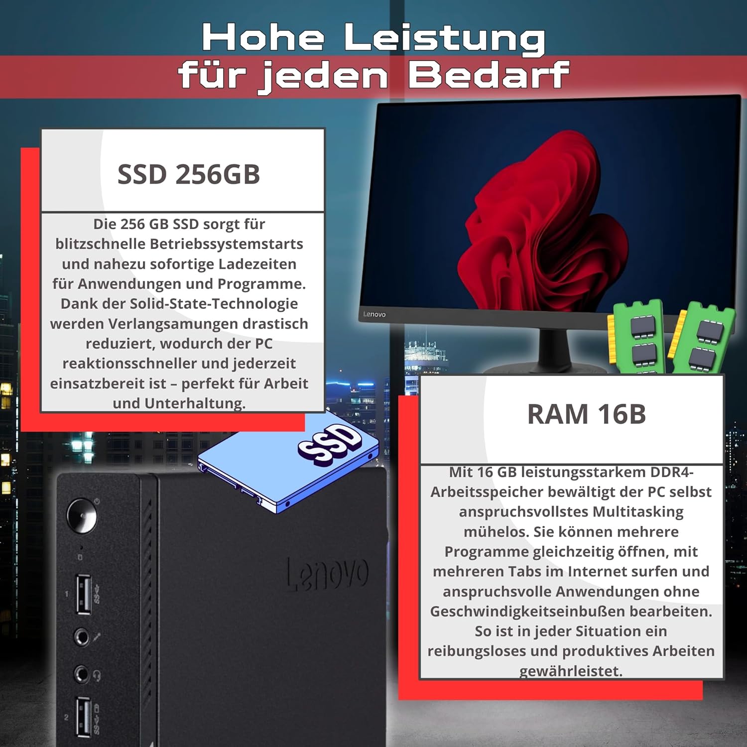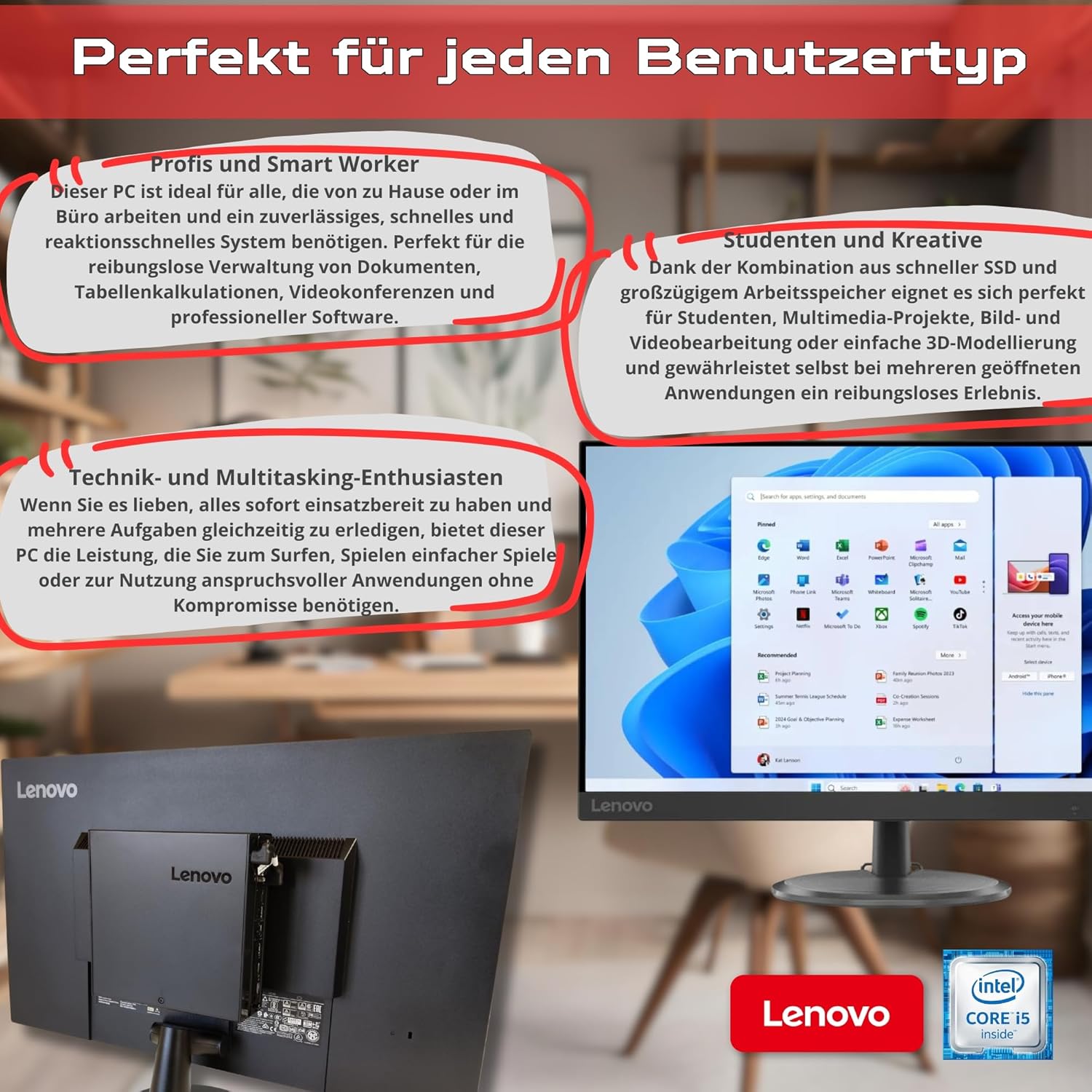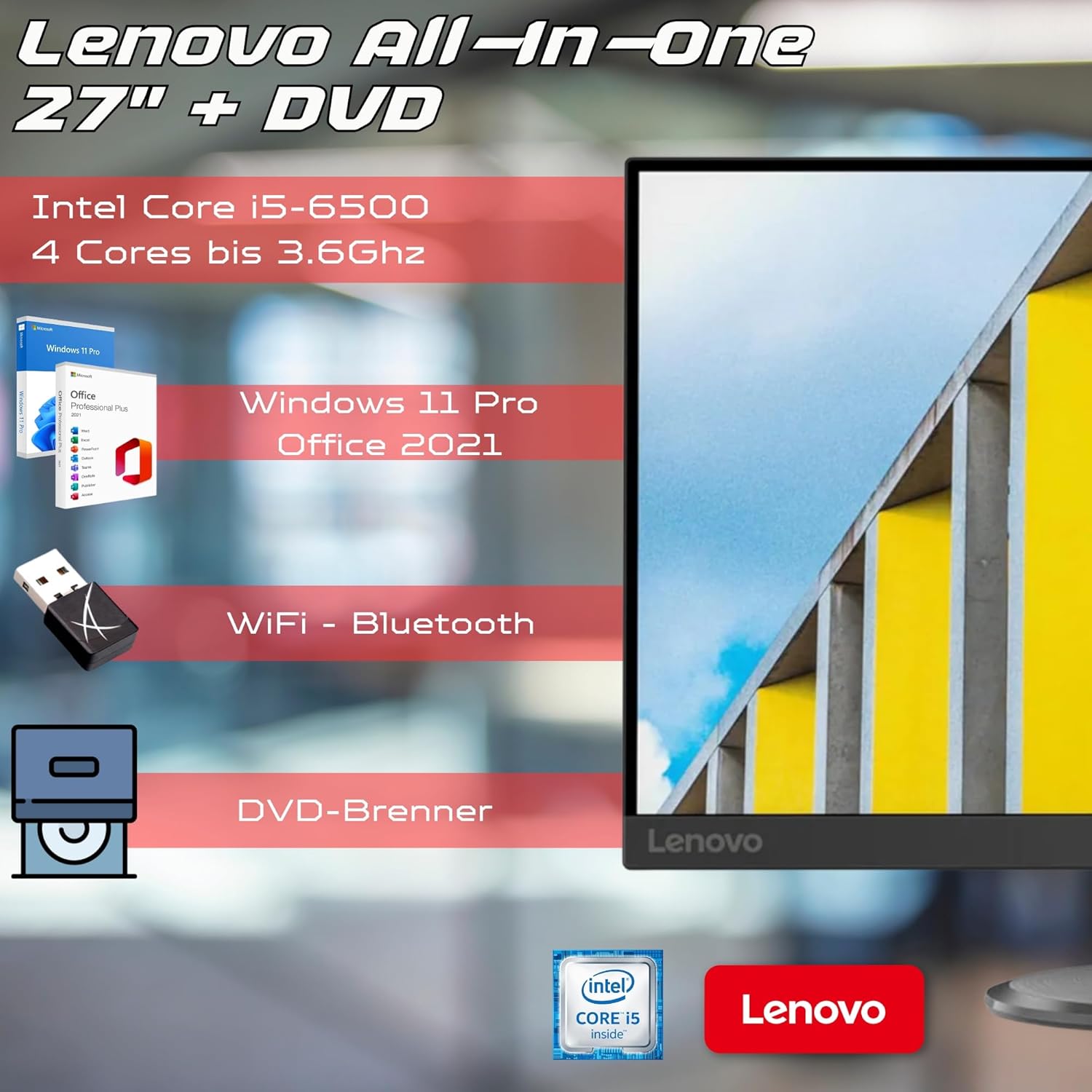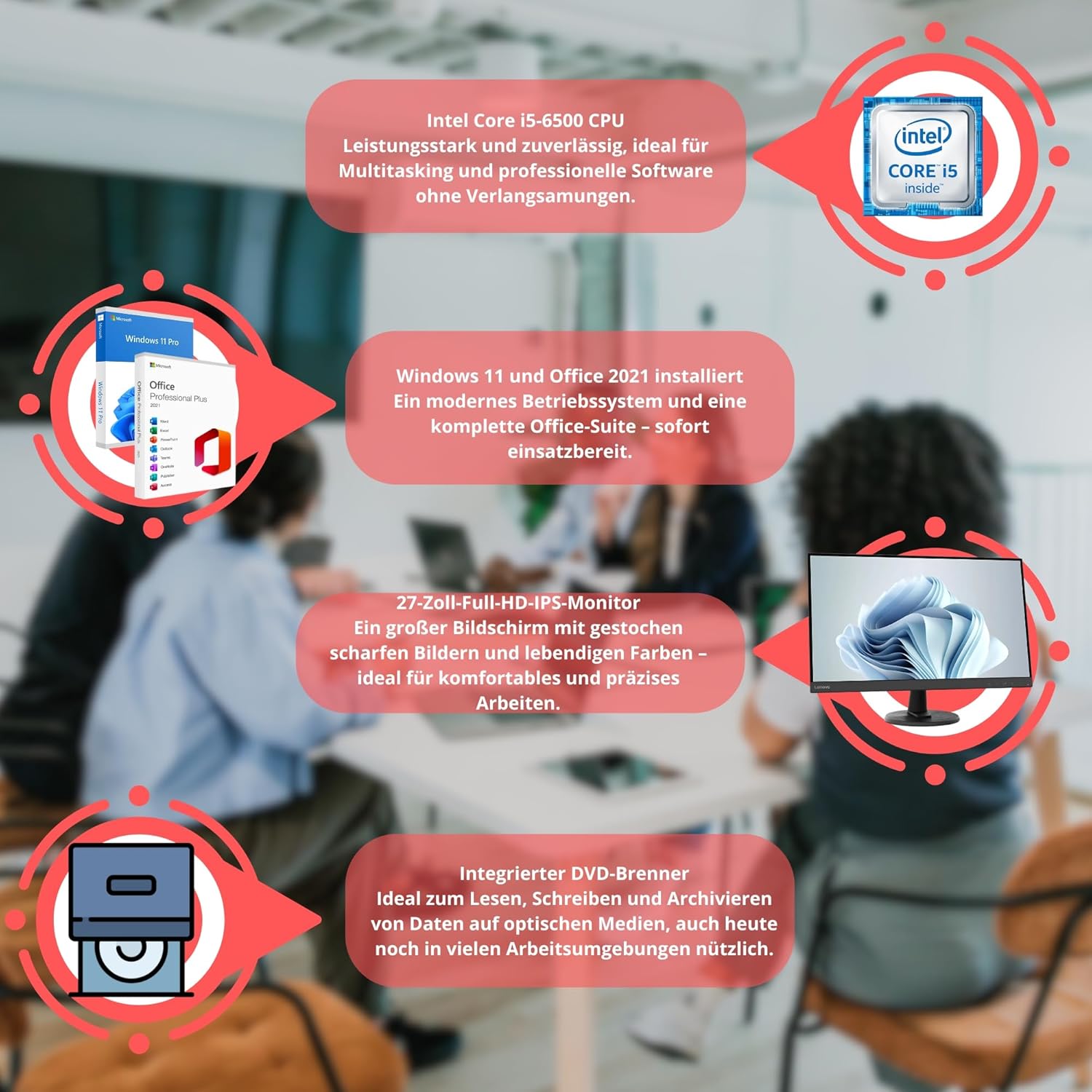 Производителност: С процесор Intel Core i5 6500T: мощен пакет в миниатюрен формат. 16 GB RAM и 256 GB SSD: пространството и скоростта, от които се нуждаете. 27-инчов монитор с Full HD резолюция: за ясен и детайлен изглед на вашето съдържание. Производителност: С процесор Intel Core i5 6500tt: мощен пакет в миниатюрен формат. 16 GB RAM и 256 GB SSD: пространството и скоростта, от които се нуждаете. 27-инчов монитор с Full HD резолюция: за ясен и детайлен изглед на вашето съдържание. Характеристики на дисплея: 27-инчов Full HD IPS дисплей с резолюция 1920 x 1080; Този 27-инчов Full HD монитор ви позволява да се наслаждавате на кристално ясни детайли и живи цветове от всеки ъгъл. С честота на опресняване 75 Hz и яркост 250 нита, никога няма да ви омръзне да гледате екрана ни. TÜV Rheinland Eye Comfort Design: Елегантен и компактен дизайн, подходящ за всяка среда, от офиса до дома. Универсалност за широк спектър от приложения, от професионални до развлекателни. Включени операционна система Windows 11 Pro и Microsoft Office 2021. WiFi периферни устройства (USB стик) Брой USB 3.2 Gen 1 (3.1 Gen 1) Type A x3, Брой USB 3.2 Gen 1 (3.1 Gen 1) Type C x1, Брой USB 3.2 Gen 2 (3.1 Gen 2) Type A x2, Брой HDMI портове x1, Брой DisplayPorts x1, Брой Ethernet LAN портове (RJ-45) x1, Микрофон, Line-in жак, Изходи за слушалки x1, Комбиниран жак за микрофон/слушалки, включени в комплекта Всичко в едно, Захранващ адаптер, WiFi адаптер, Адаптер на марката Computers Parts SRL