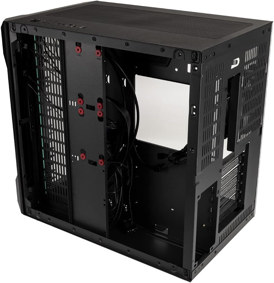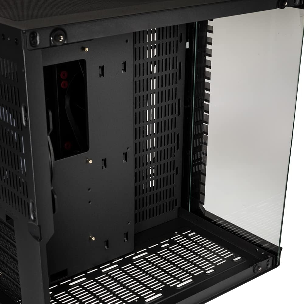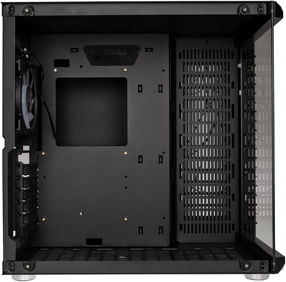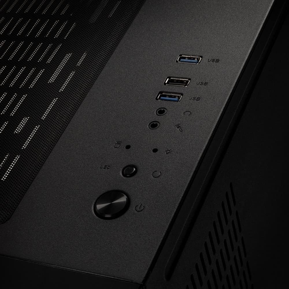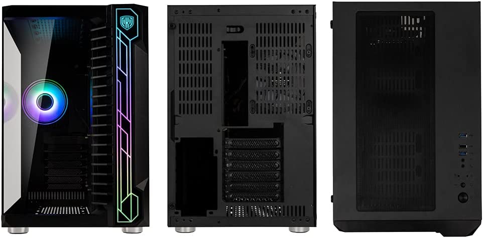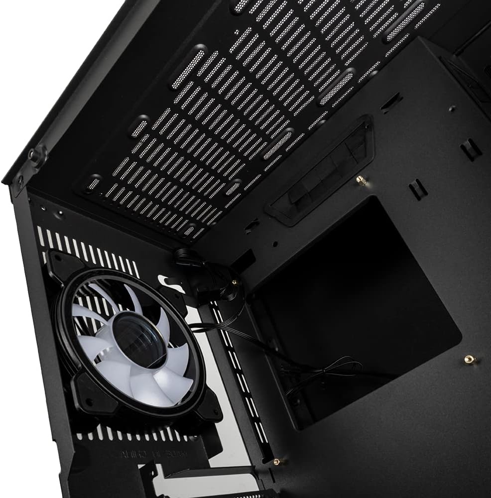 • PC кутия с вентилатор; Корпус за въздушен поток с предварително инсталиран 120 mm ARGB вентилатор в задната част за допълнителна циркулация; също 9x точки за закрепване за 120 mm вентилатори (3x отгоре, отдолу и плот)