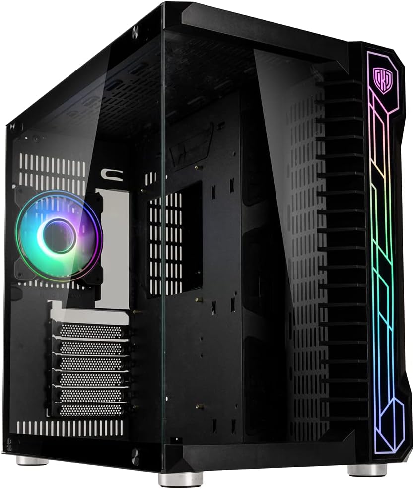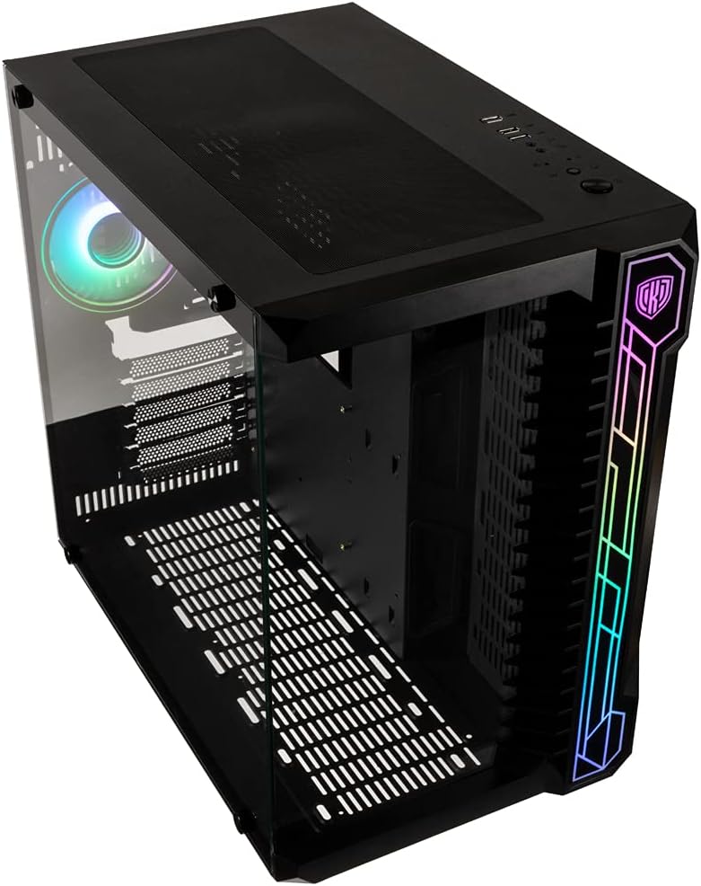 • Кутията за компютър за игри има атрактивни странични панели от закалено стъкло с осветени ARGB рамки, които могат да се синхронизират с общ софтуер от производителите на дънни платки
