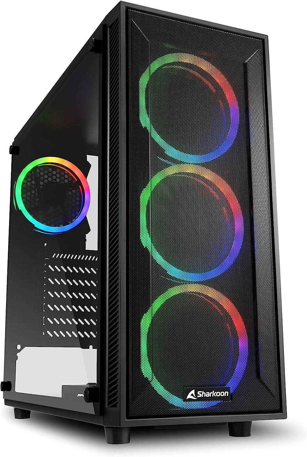 Компютърна кутия Sharkoon TG4M RGB, Mid tower, 4 120мм ARGB вентилатора, Темперно стъкло, Черен