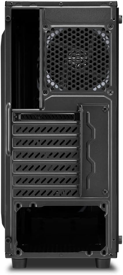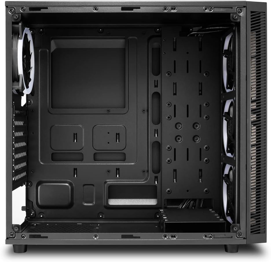 • Дишащата мрежеста предна част позволява постоянна вентилация на целия калъф. Три 120 mm RGB вентилатора отпред и един отзад осигуряват подходящо охлаждане.