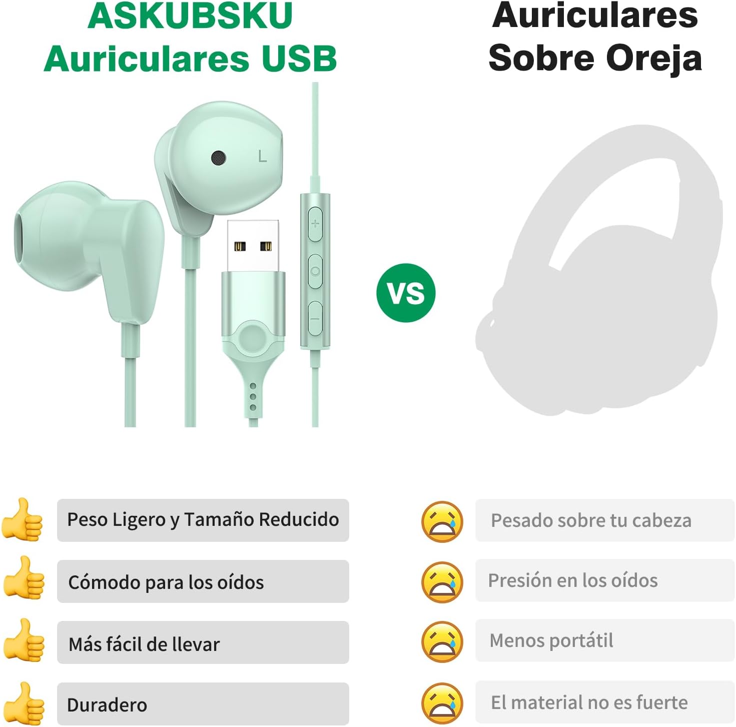 • Леки и удобни компютърни слушалки: за разлика от повечето обемисти слушалки тип „над ушите“ на пазара, тези USB слушалки с микрофон предлагат на потребителите удобно и безопасно носене. Обвити в нежен към кожата протеинов материал, те са удобни за носене през целия ден.