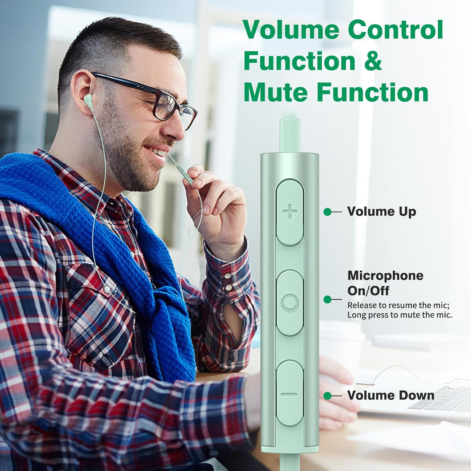 • USB A слушалки с HD чат: Слушалки с микрофони. Компютърът има вграден микрофон, който точно улавя гласа ви. Осигурява висококачествени гласови разговори и видео комуникация с висока издръжливост и стабилност за дълги периоди от време. Отличното качество на звука ви предлага перфектно изживяване. Съвет: Дръжте кабела на слушалките над дрехите си, така че микрофонът да улавя гласа ви точно.