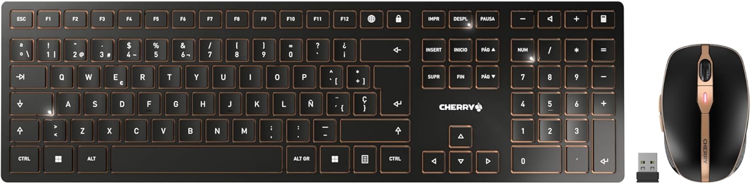 Комплект безжична клавиатура и мишка CHERRY DW 9100 SLIM, чешка/словашка подредба (QWERTZ/QWERTY), Bluetooth и 2.4GHz безжична връзка, презареждаща се, черно-бронзова