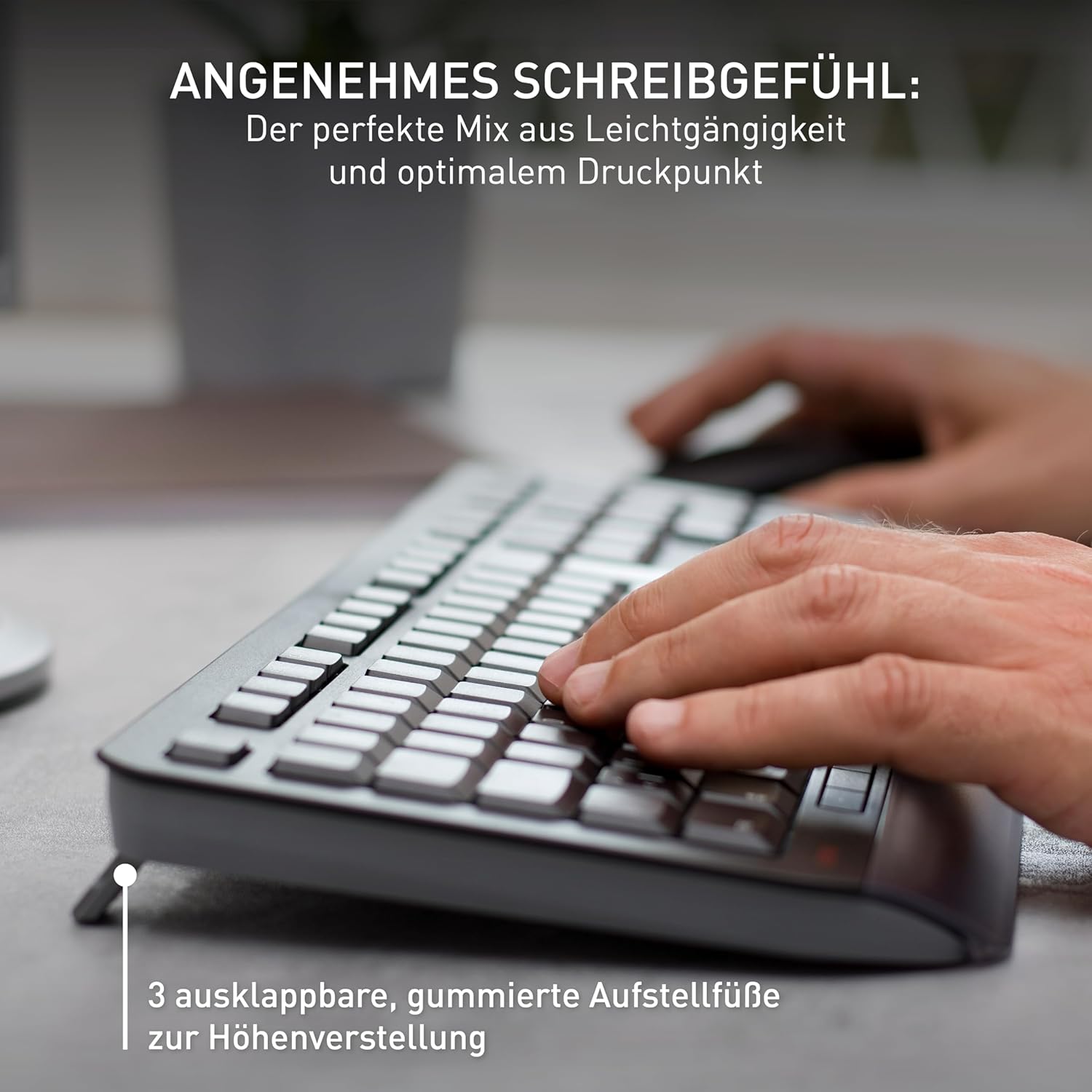 • Здрава безжична клавиатура с подходяща мишка: Комплектът, работещ с батерии, може да се свърже безжично чрез 2,4 GHz радио и има живот на батерията до 3 години