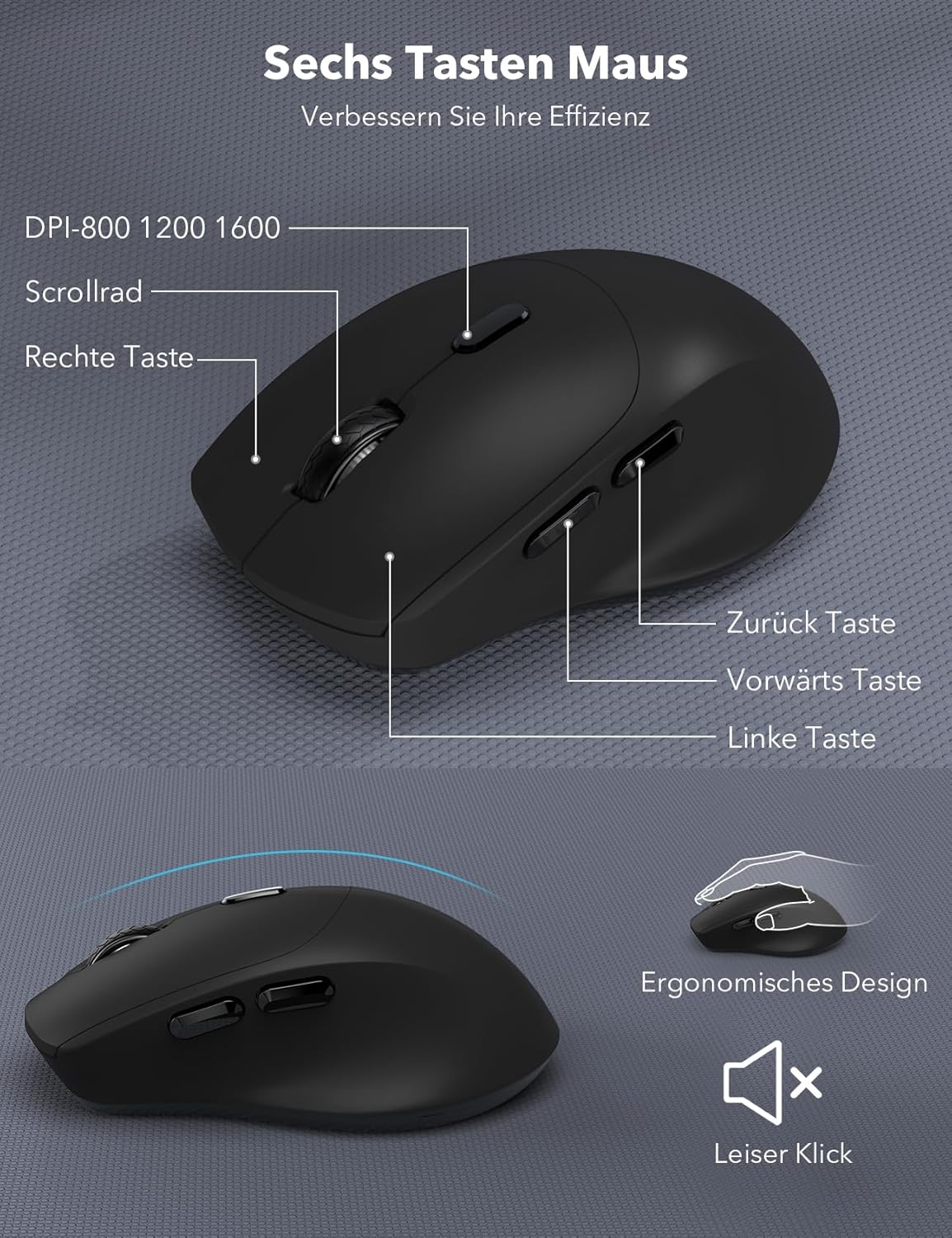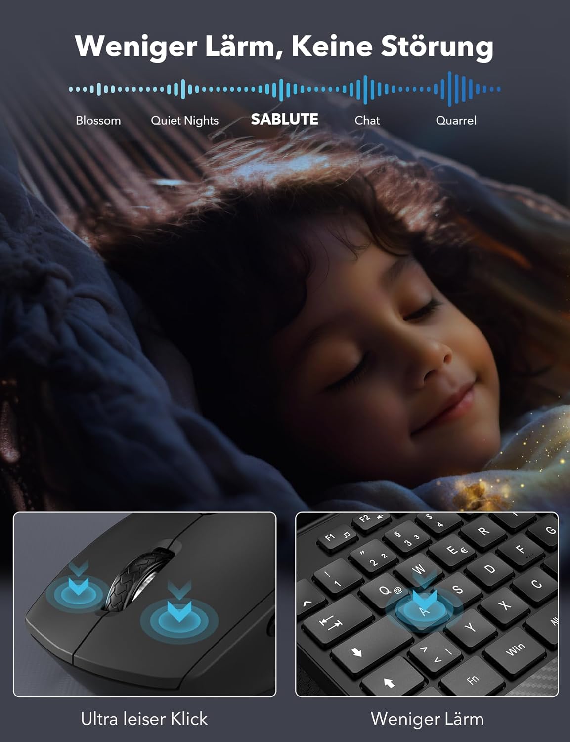 • 【ПО-МАЛКО ШУМ, ПОВЕЧЕ ФОКУС】 - Меки мембранни клавиши за тихо и плавно писане. Водоустойчиви, прахоустойчиви и устойчиви на разливане, вече можете да пишете тихо и удобно през целия ден. Безжичната мишка се усеща също толкова щракаща, но издава 95% по-малко шум. Край на притесненията, че ще безпокоите другите.