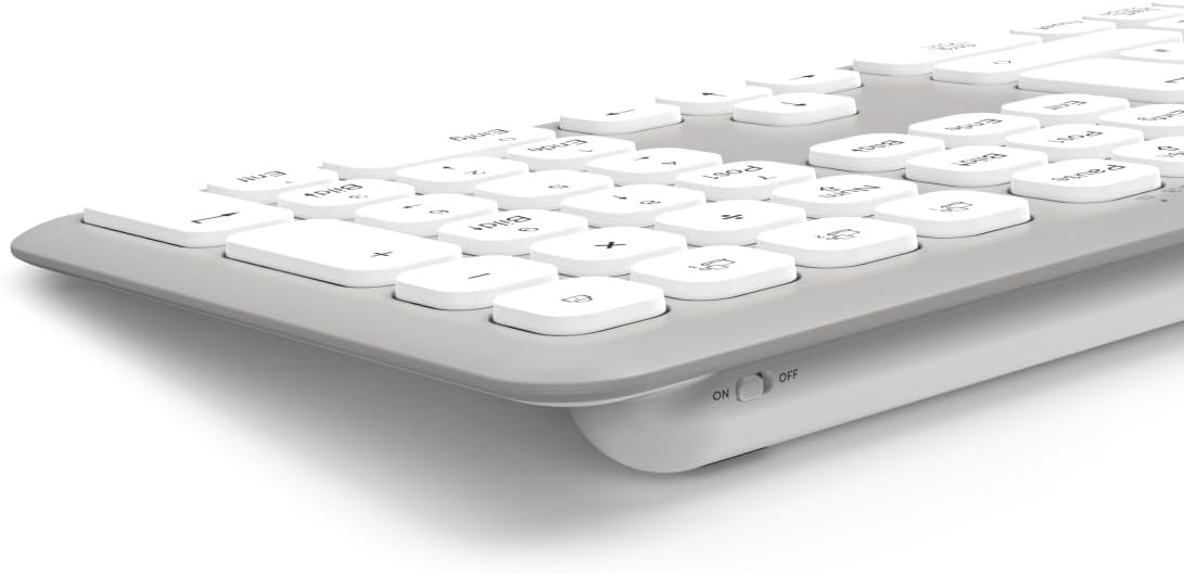 • 75% клавиатура за плавно писане: лазерно маркирани, тихи клавиши за спокойна работа, вдлъбнати капачки на клавишите, здрав ножичен механизъм, идеална за високи скорости на въвеждане, захранвана от батерии, режим на готовност
