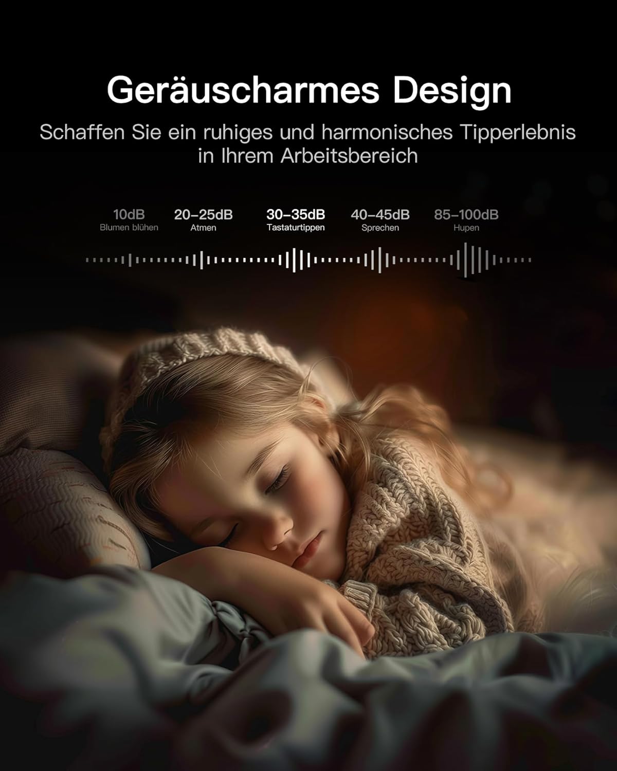 • Ергономичен дизайн: Безжичната клавиатура разполага с широка опора за длани и регулируеми крачета. Ергономичният дизайн поддържа китките ви, намалява умората и прави всяко натискане на клавиш удоволствие.