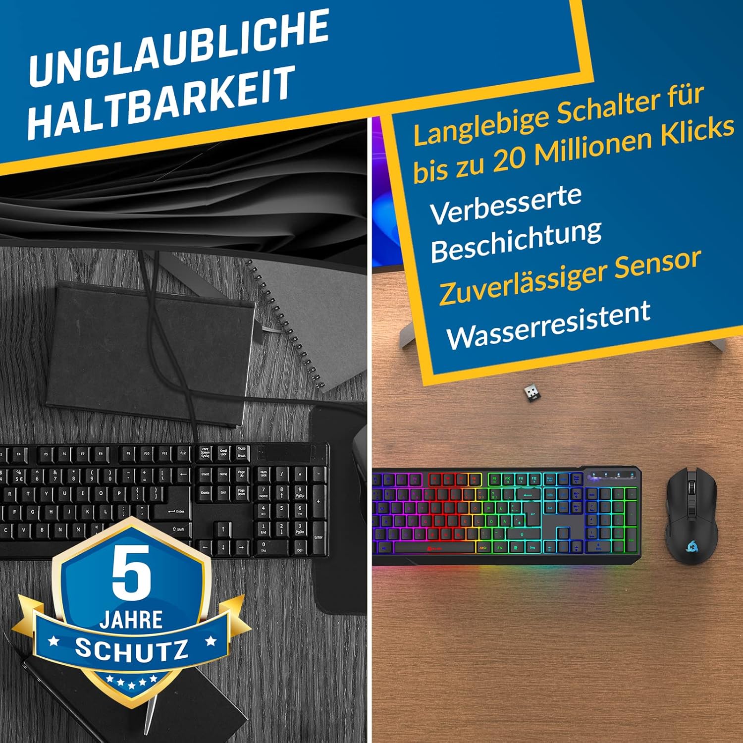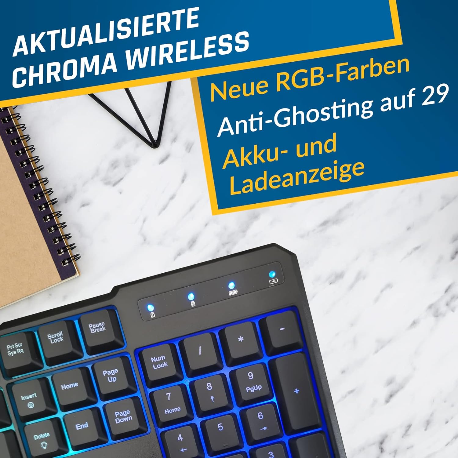 • ✅ Издръжлива и лека. Тази клавиатура е водоустойчива - винаги е под ръка, в случай че нещо се обърка! Има експлоатационен живот от 20 000 000 кликвания. Изработена е от акрилонитрил бутадиен стирен (ABS) пластмаса, особено здрава пластмаса. Няма значение дали е изпусната. - За клавиатура, KLIM Chroma, която тежи 490 г, е и доста лека!