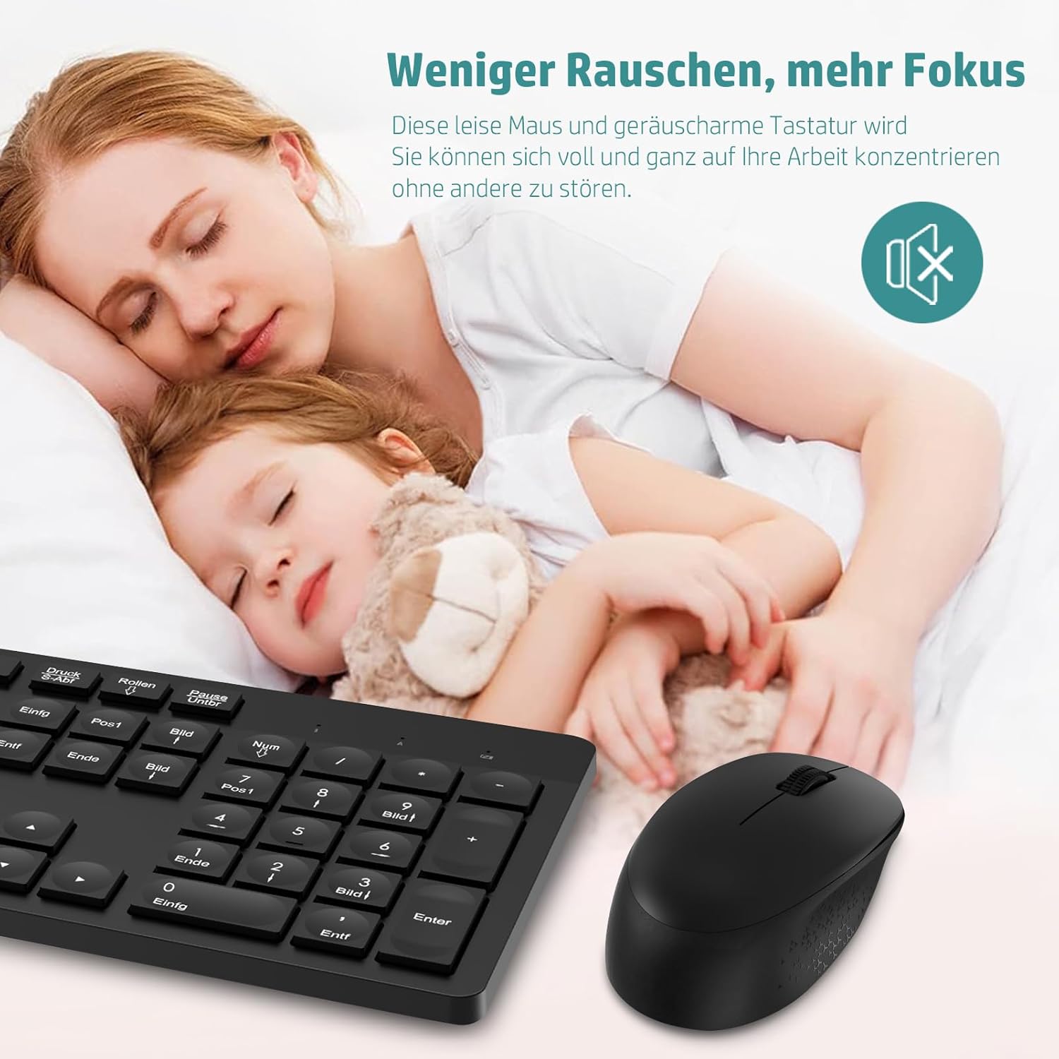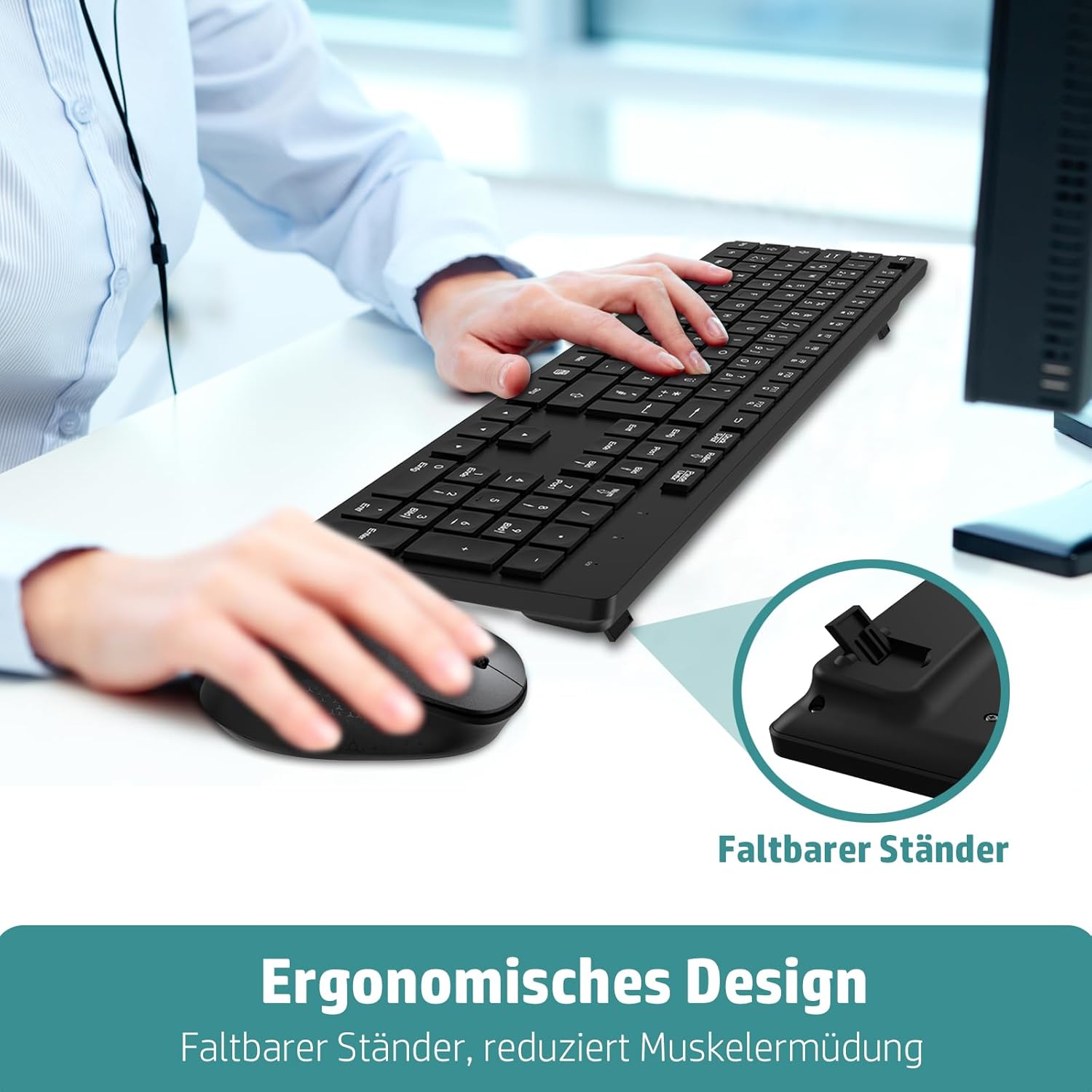 Комплект безжична клавиатура и мишка LeadsaiL K786, QWERTZ немска подредба, 2.4 GHz безжична клавиатура и мишка, безшумно щракване, 2-в-1 USB Nano приемник за компютър/лаптоп