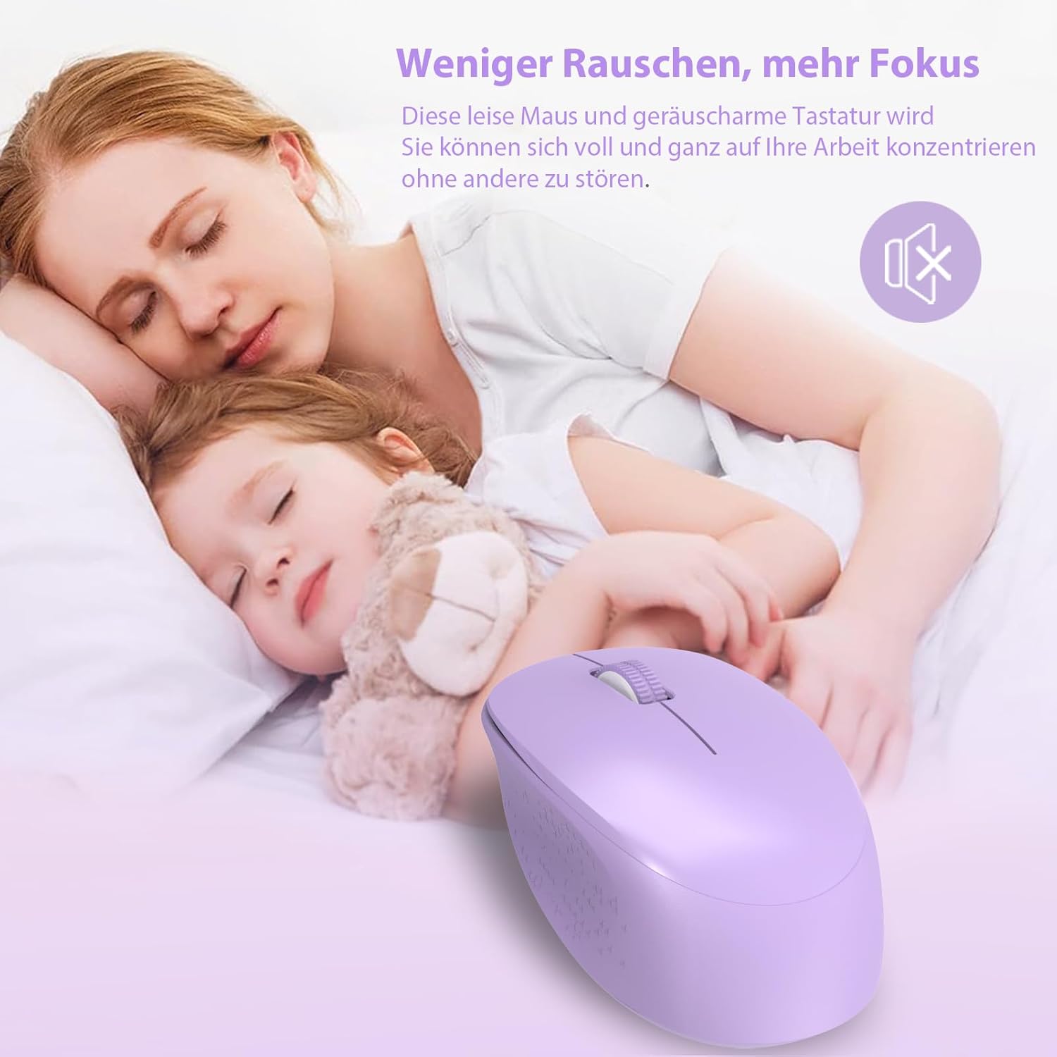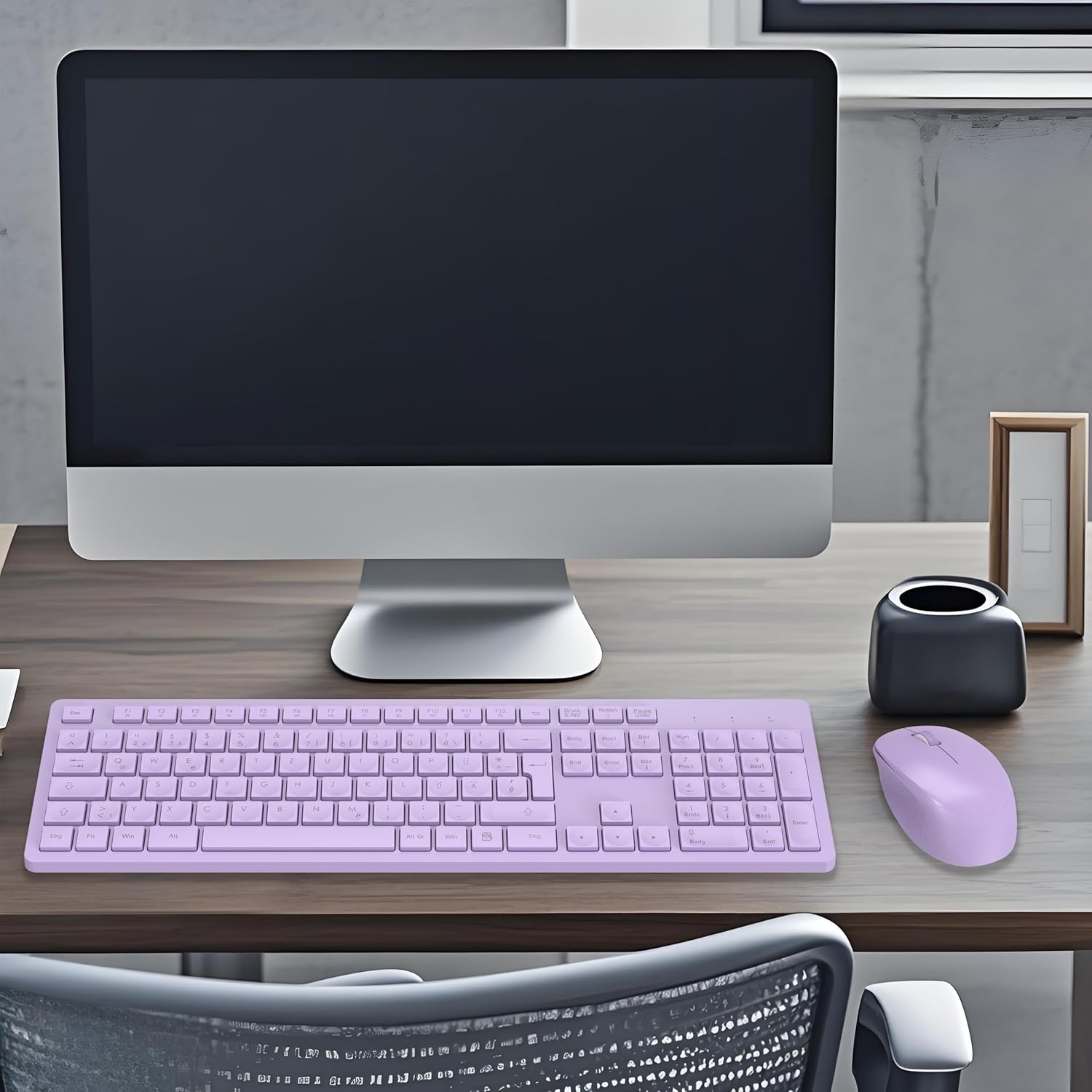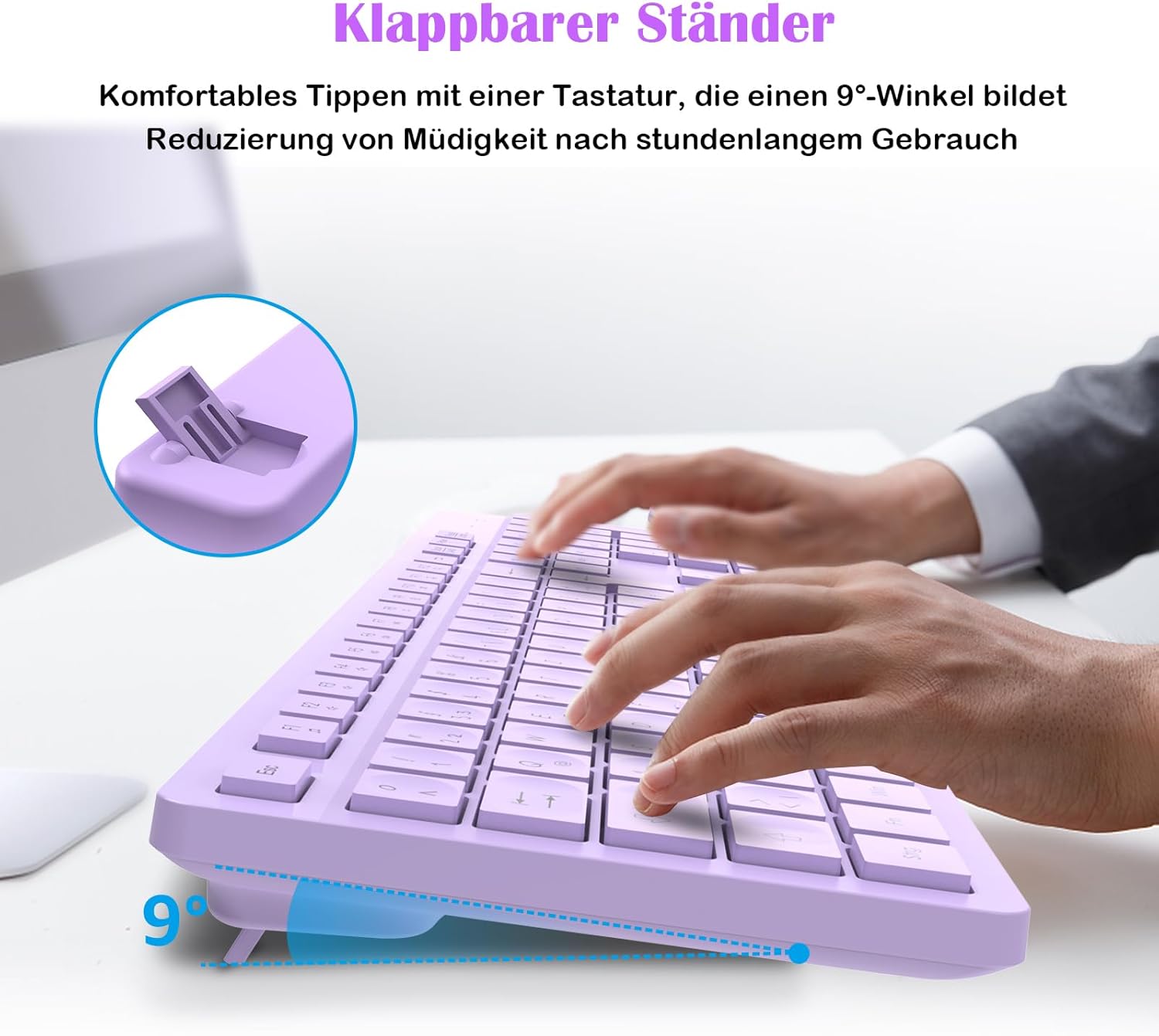 Комплект безжична клавиатура и мишка LeadsaiL K786 с цифрова клавиатура QWERTZ, немска тиха клавиатура Whisper, 2.4 GHz безжична мишка и клавиатура, 2-в-1 USB Nano приемник за компютър/лаптоп (лилав)